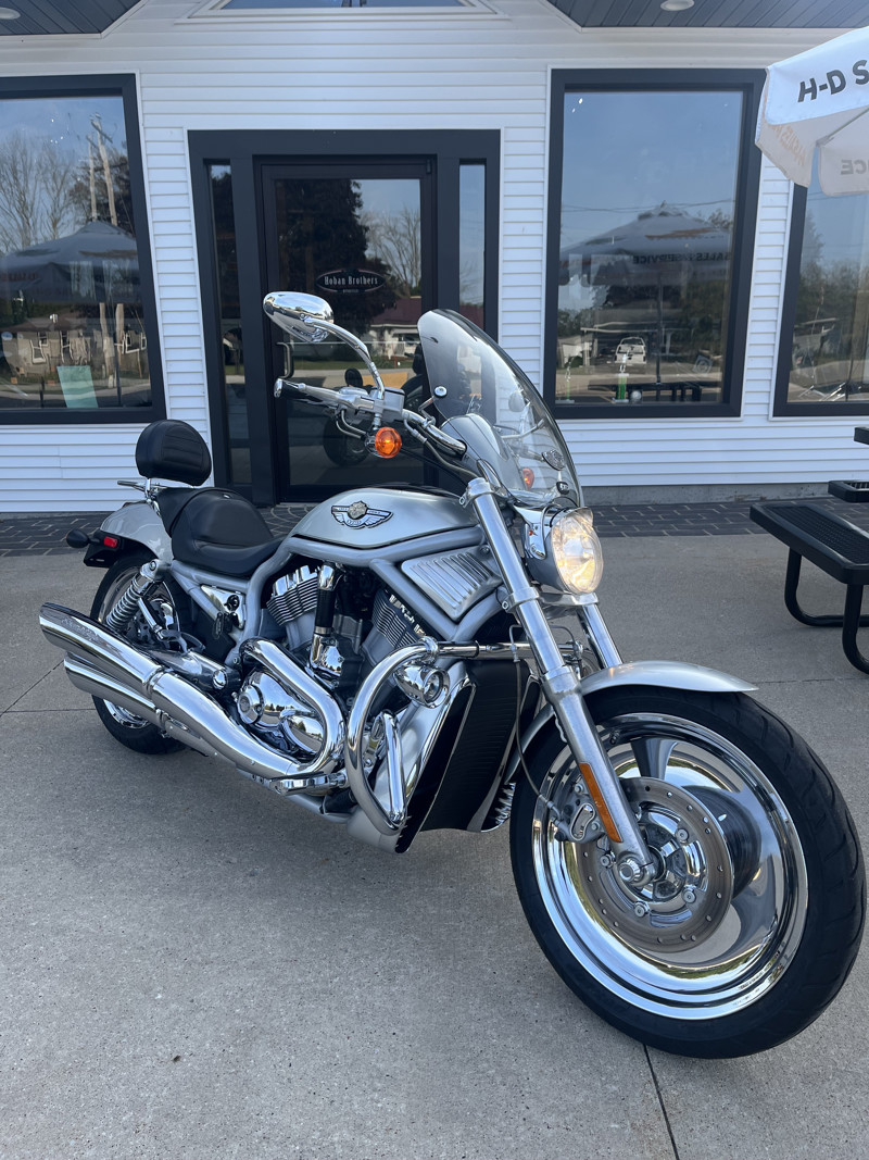 Up for sale is the 2003 Harley-Davidson VRSCA V-Rod Aluminum, finished in the striking Sterling Silver Anniversary color. This bike has been well cared for by its owner and is in excellent, clean condition. It rides on new tires with only 1,800 miles, ensuring plenty of life and a smooth, confident ride. The V-Rod’s unique design and performance-oriented engineering make it a standout in both style and capability. If you’re looking for a low-mileage, well-maintained Harley-Davidson V-Rod that turns heads and delivers a thrilling ride, this 2003 VRSCA Aluminum is the one. All of our motorcycles go through our 33 point inspection and have all oils changed. Make it yours today.