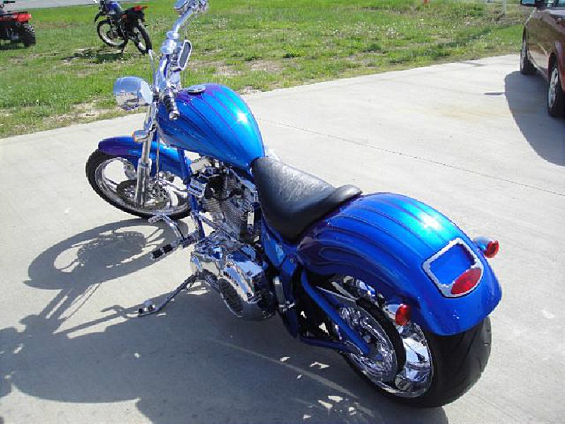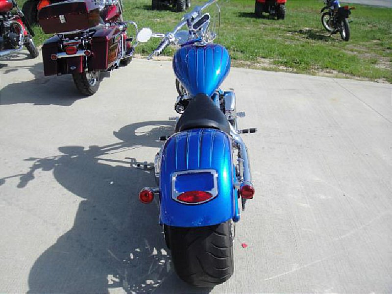 This is a 2003 Vengeance Vendetta, blue, chrome pipes, chrome wheels, and steel braided brake lines. The paint is in great condition for a 10 year old bike, with minimal rider wear. Tires are in good condition with 75% tread on the front and 50% tread for the rear. Don't miss out on a great bike.
