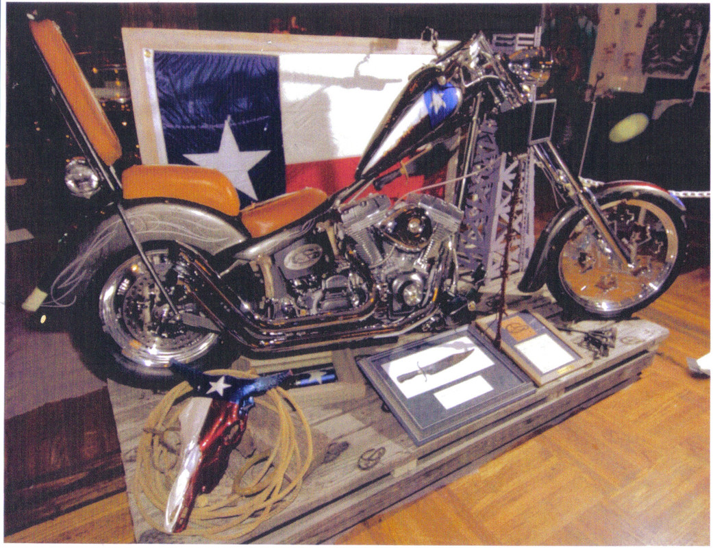 I’ve owned the Texas Star since August 2013. The bike has only been shown in a few local shows in Utah since I’ve owned it. The bike has been carefully stored and is in mint show condition. The bike will include the encased Texas Flag that was flown at the Alamo in its honor when the bike was on display there, also included is a Texas oil barrel pallet Stage that is branded with Sonny’s Logo and wired for sound with two custom built stanchions. I am also including the blueprints of the original Bowie Knife. I have many pictures of the bike during construction and at featured events on display by Sonny.