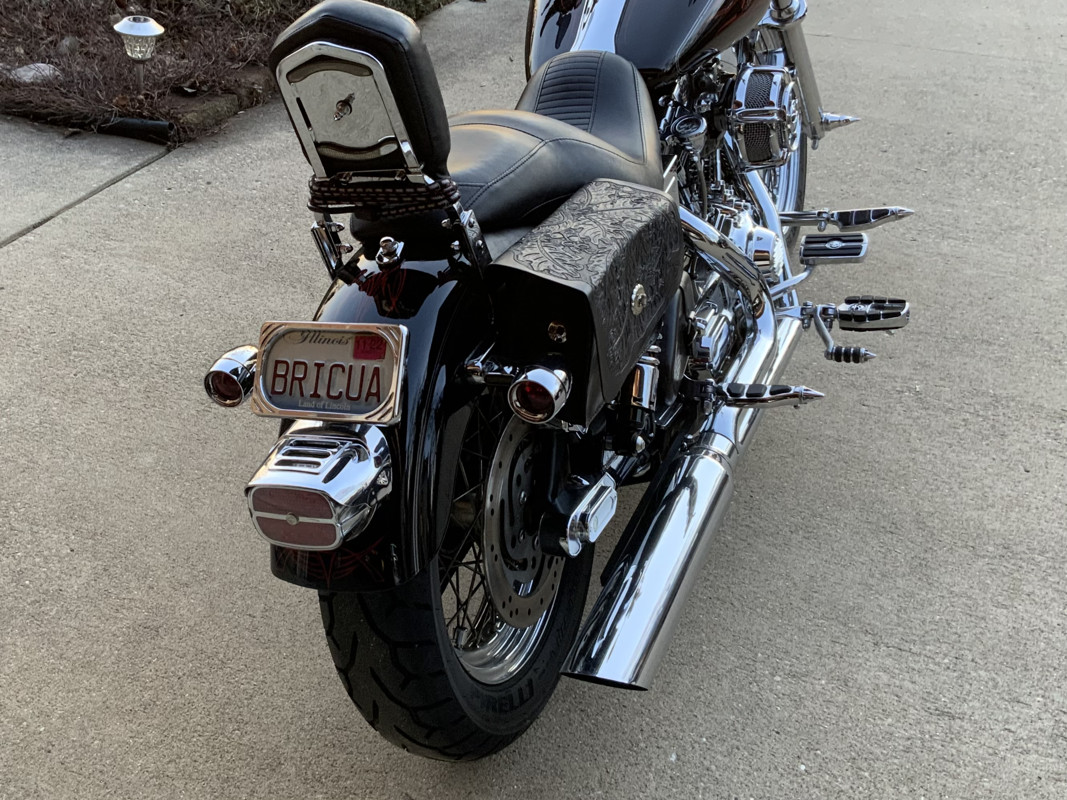 Engine 113ci/1861cc/120foot lbs torque. All screaming eagle racing parts and stage 1 air cleaner/Stroker Pro Flywheel/Baker 6 speed trans/D & D FatCat 2into 1/Clutch perform Nonslip assistance/Mikuni HSR 48/new High perform Perelli Night Dragon tires/New Battery/mini Ape Hanger handle bars & custom grips/Triple Trees wide elite 5 degree over standard rake/Chrome braide shifter and brake lines/all chrome made from Harley for this bike is on this bike!/Seats one standard plus LePera Custom seat/Cafe front fender & original fender/Custom pin stripping. All custom work completed by certified Harley mechanics/All work done on bike comes with records and performance testing completed. This motorcycle has never rode in the rain and has always been kept in the garage. A bike that has been created by a man with a passion for the ride, but retired and would love to see the bike fulfill many more years to come!