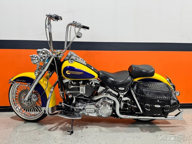 2004 Harley-Davidson Heritage Softail Classic Cholo Style FLSTCI Rare Two-Tone Paint Combo! 88"/1450cc Twin-Cam Engine5-Speed TransmissionNebula Yellow and Indigo Blue Pearl41,937 Miles. Fuel Injected. Extras Include:Samson Chrome Fishtail Exhaust PipesFully Chromed Front EndAll Chrome Hand Controls & SwitchesChrome Fat Spoke 21"/18" Wheel Kitw/ recent White Wall Tires!Chrome Engine Guards16" Chrome Ape HangersLED Headlight and Passing LampsLED TaillightsLED Turn signals and Smoked lensesChrome Headlamp and Passing Lamp VisorsTrumpet Horn KitChrome Front and Rear CalipersChrome Fender Bumper&More! VIN# 1HD1BWB1X4Y026652 WE FINANCE, TAKE TRADES & SHIP NATIONWIDE! American Classic Motors315 Big Road Zieglerville PA 19492(610)-754-8500Sales@AmericanClassicMotors.comwww.AmericanClassicMotors.com Dealer Serviced and Ready to Ride! PA Inspected for PA Customers!