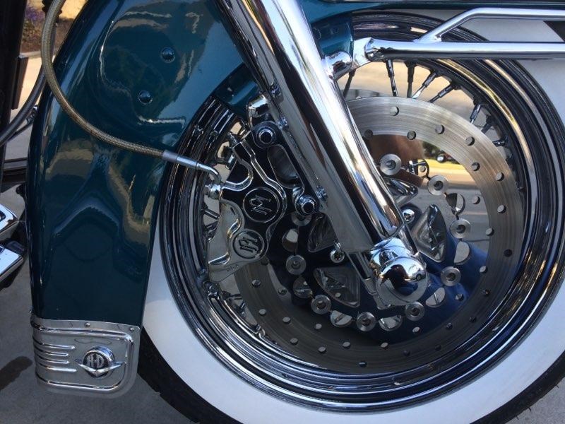 This bike is a one of a kind, old school with all the nice touches! One owner and has been well- taken care of. This bike has only 19,400 miles on it. The entire front end is chromed with PM calipers and Lyndall floating rotors. The calipers were rebuilt in 2017. The engine has had the following components added: 95ci cylinders, Barnett heavy-duty clutch, oil cooler, S&S heads, S&S compression release, T-P Pro Series Roller Rockers, S&S adj. pushrods, S&S hydraulic lifters, Andrews gear driven cams, S&S 585 G cam kit, EFI race tuner kit, S&S high compression 10.3 to 1 pistons, dyno tuned by Chris Rivas(sales@chrisrivasvtwin.com) inner primary chromed, SS braided lines throughout. Rear suspension has the Legend Air Ride system. Don't miss out on this one!