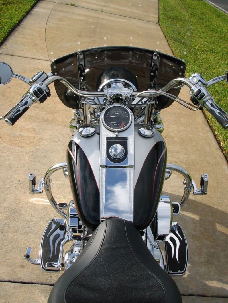 One owner . Impecable . Extremely low mileage 3662 . $20,000 in factory accessories and chrome upgrades. Impeccably maintained. Chrome wheels , low suspension front and back , rk front light , custom wind shield , flames chrome foot pegs , chrome cilinder pouch, back rest , passenger back rest , unique HD paint job etc …all upgrades done by HD