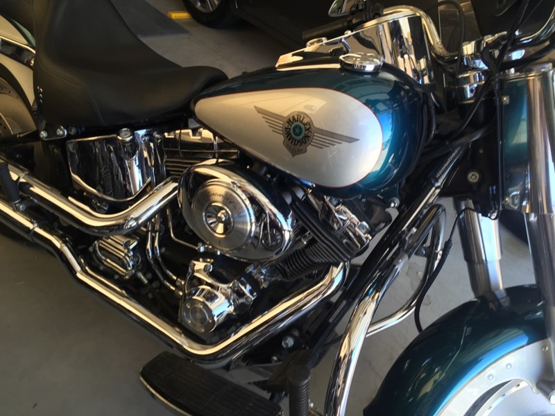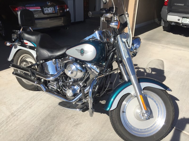 This is a beautiful two-tone Harley Fat Boy with Screamin Eagle EFI and Vance & Hines pipes. Garaged. Excellent condition with new battery. $8999 or best offer. I am, I think, the second owner on this bike. I bought it from a guy in Kansas who had not ridden it much, and now I haven't either. It is comfortable to ride, especially with the windshield.