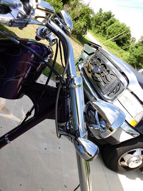 Custom paint and detail, Deep purple with silver ghost flames on tank. Lots of extra chrome, new battery. Mileage is approx.