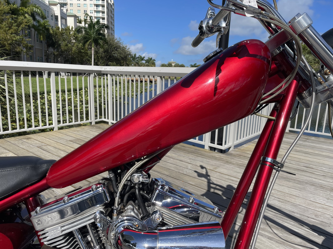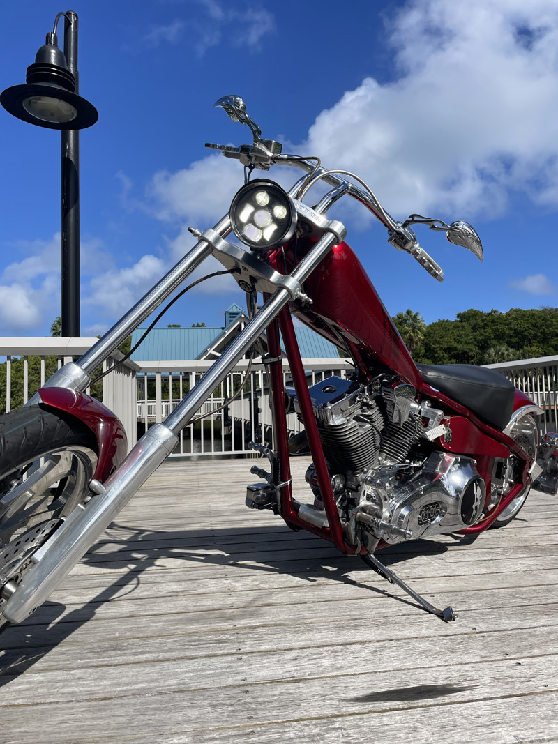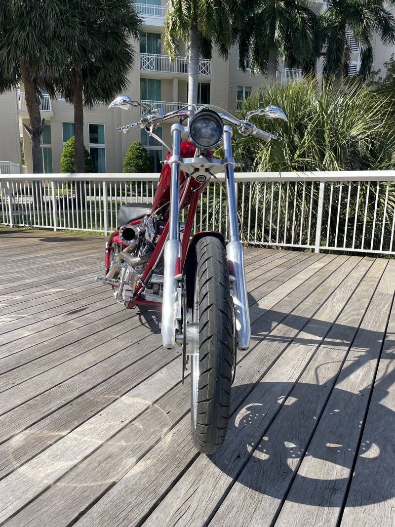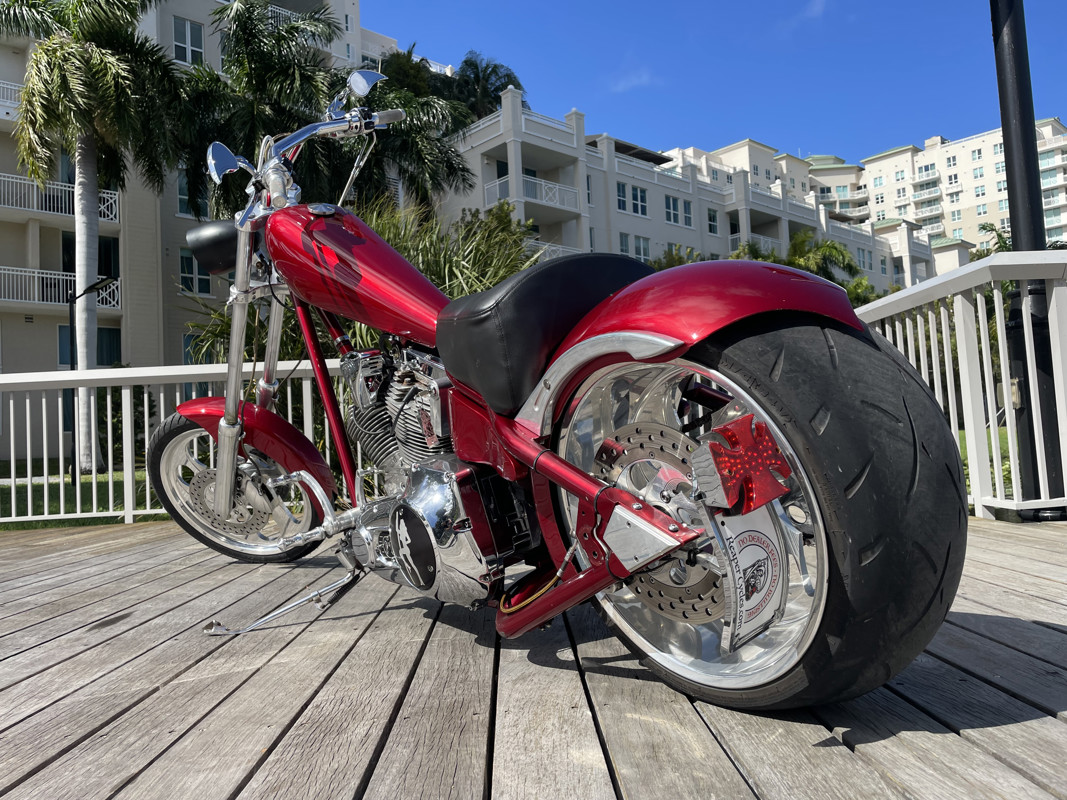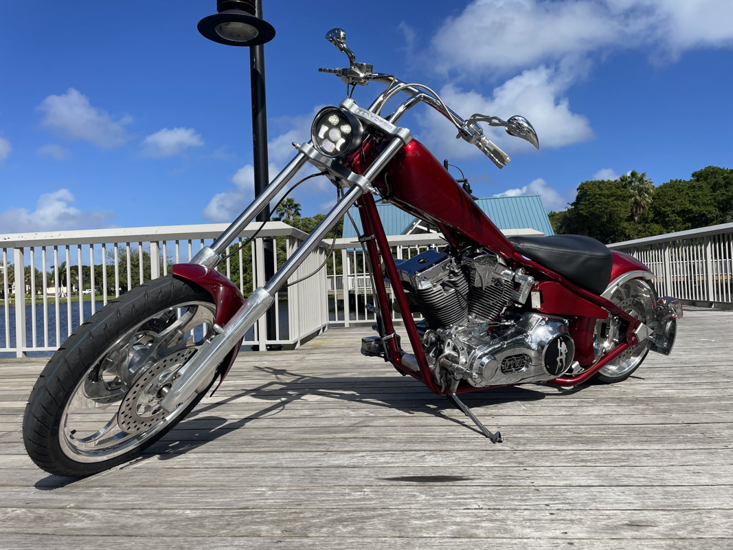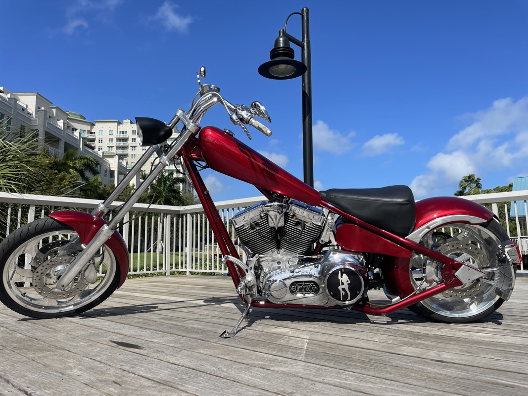 This is an extremely nice and well-built chopper. The bike is excellent in almost all aspects. Beautiful paint, super nice running 111ci motor, shifts easy through the 6-speed tranny. I had the bike up to 75Mph in no time and no wiggle, just asking for more.