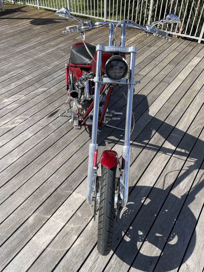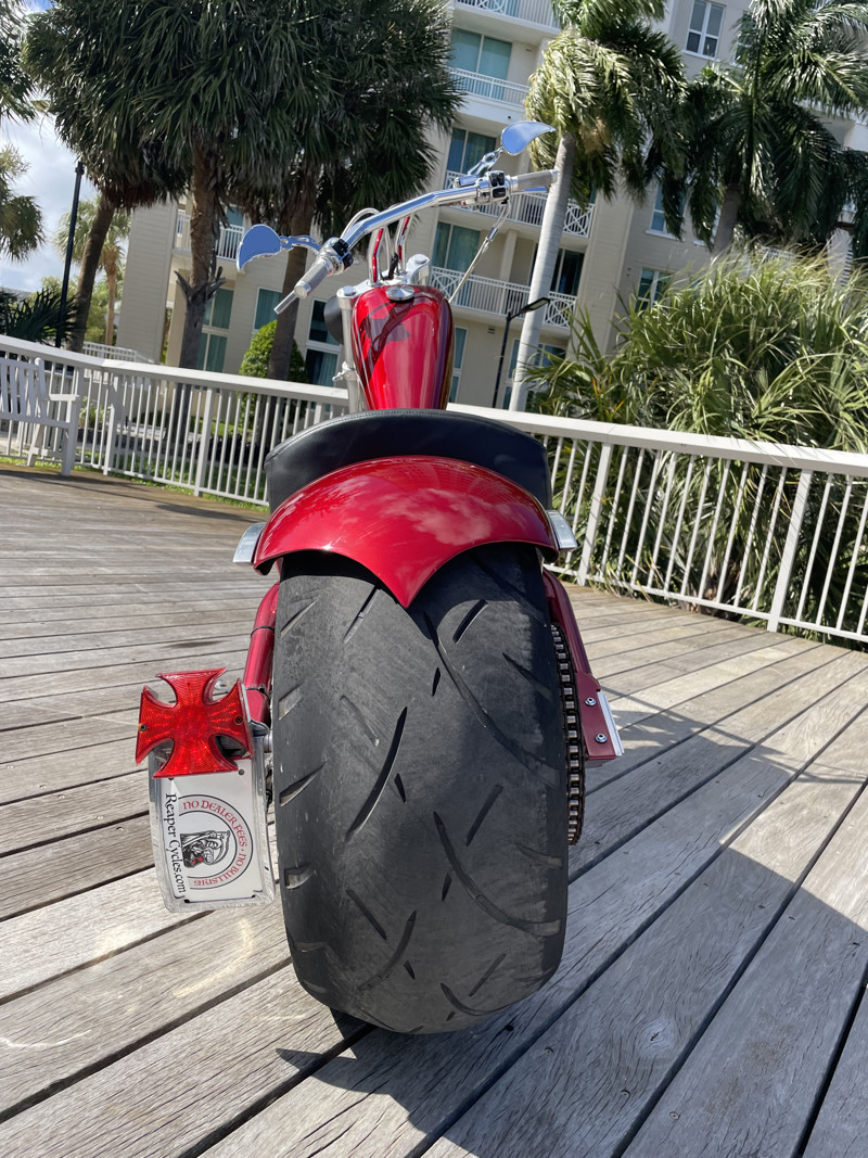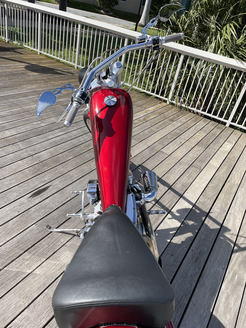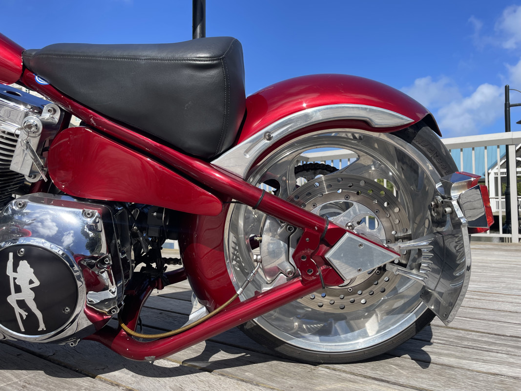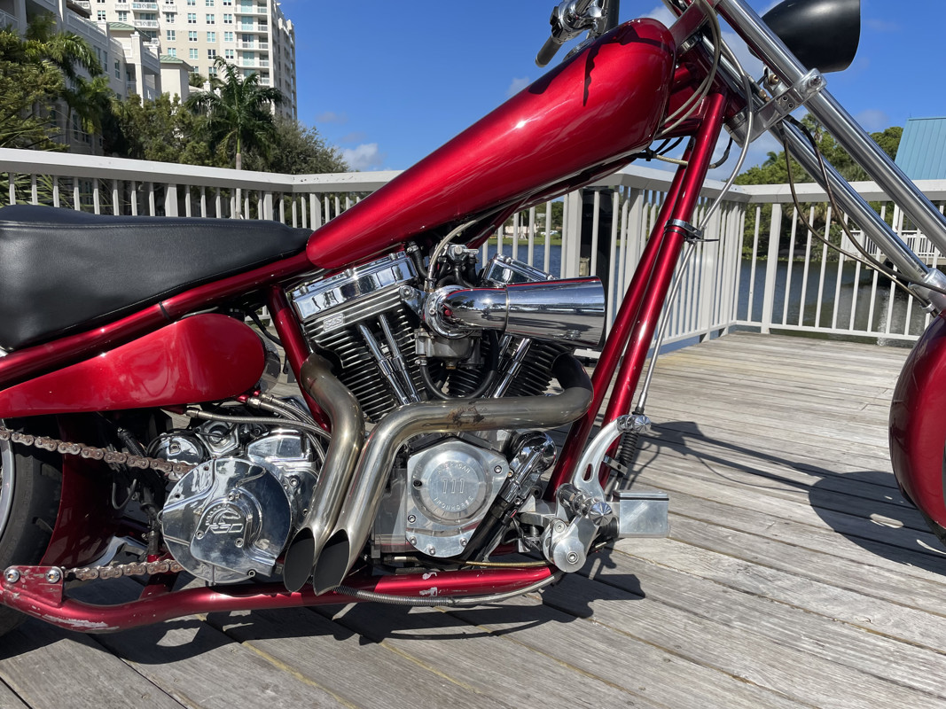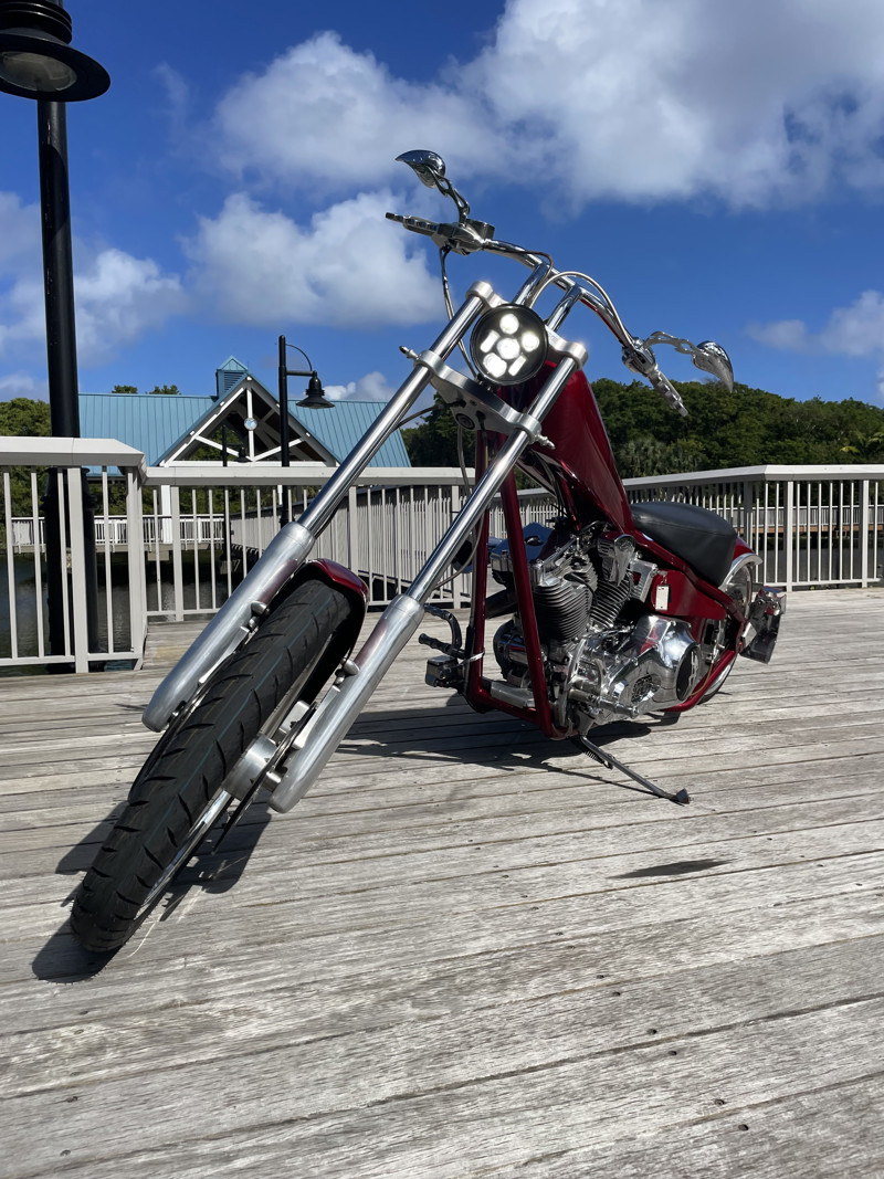 This is an extremely nice and well-built chopper. The bike is excellent in almost all aspects. Beautiful paint, super nice running 111ci motor, shifts easy through the 6-speed tranny. I had the bike up to 75Mph in no time and no wiggle, just asking for more.