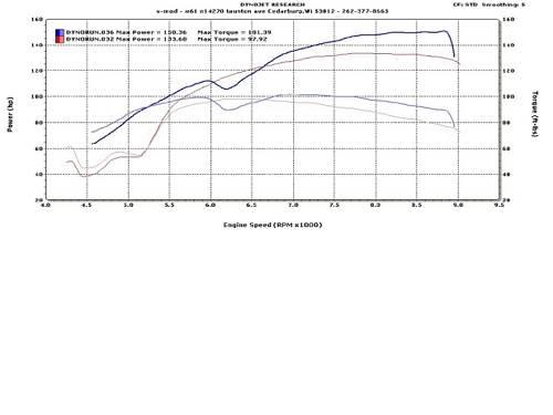 134 RWHP w/cams, throttle bodies, and exhaust; 150 RWHP w/nitrous add
