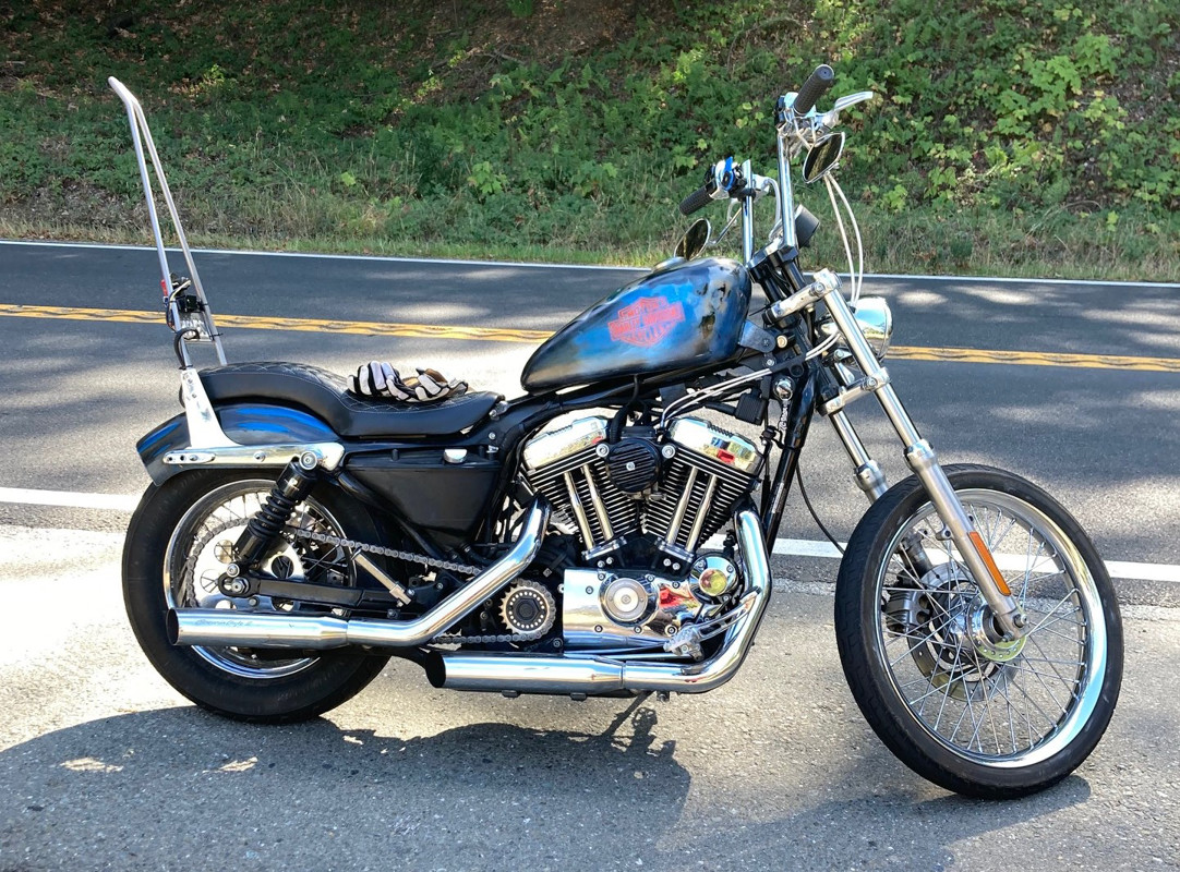 2005 Sporty/ SE exhaust /custom seat/ sissy bar 30" /mini apes /TC bros chain conversion/ bung king moto pegs/ Tank patina. Jetted perfectly. Bike is loud and rips. Not a drop of oil. Super clean bike for age. Just too small for me and looking for a Dyna. $6800.00