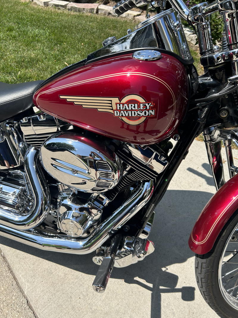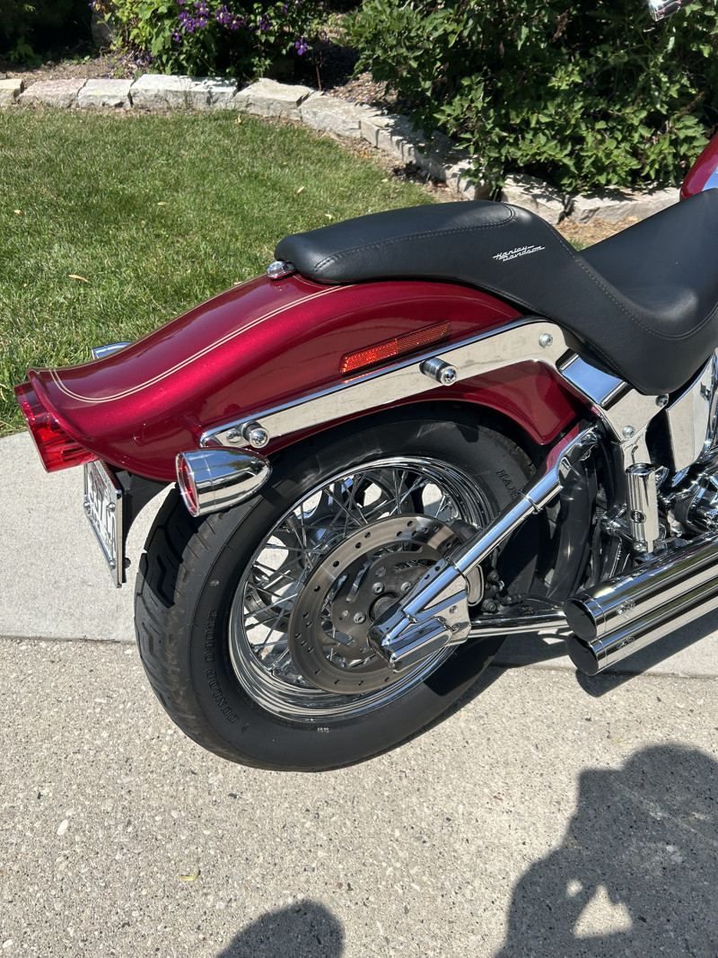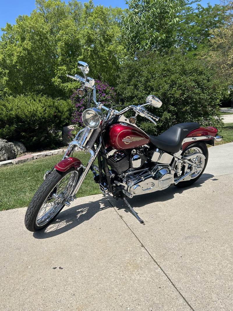 This one owner springer turns heads wherever it goes. It's not often you see a springer these days. This one blends old school style with new school flash. Bike runs and rides great. To many extras to list, pictures speak for themselves. I should mention it has Screaming Eagle air intake, detachable backrest and luggage rack, fuel injection, loud and proud Vanc and Hines pipes, a breathable cover, and sissy bar bag.