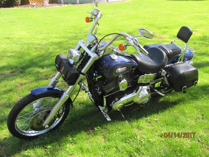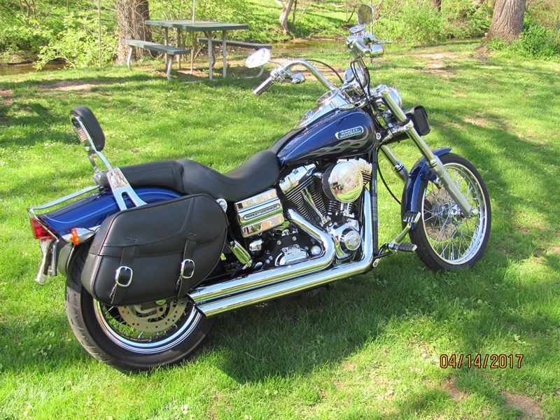 2006 DYNA WIDE GLIDE IN EXELLENT SHAPE. OIL CANGED ABOUT 800 MILES AGO,PRIMARY CHAINE OIL CHANGED 200 MILES AGO. ALL WORK BY HARLEY.BOTH TIRES ARE IN NICE SHAPE. AS YOU CAN SEE MANY EXTRAS. BAGS ARE ALSO NEW.(NICE TO HAVE) 6 SPEED TRANSMISSION,1450CC. VERY LOW MILES.THIS IS READY TO RIDE. BIKE WAS NEVER DOWN. NO DENTS,NO LEAKS. SORRY LOCAL PICK UP ONLY. I CAN WORK WITH BUYER TO HELP SHIP. ANY QUIESTONS,PLEASE ASK.
