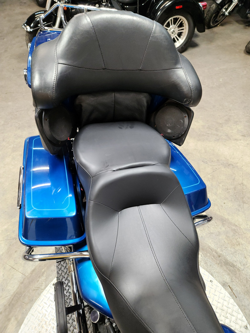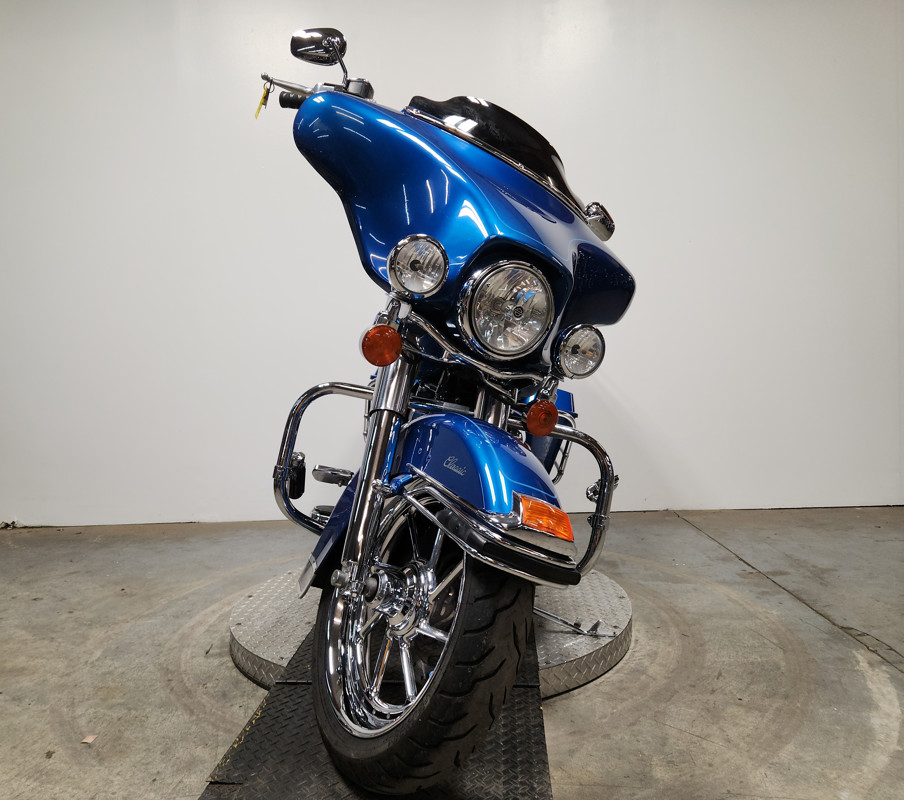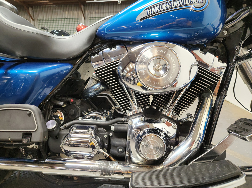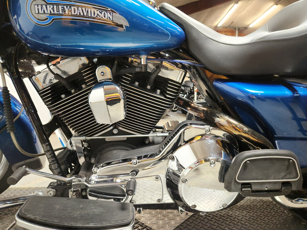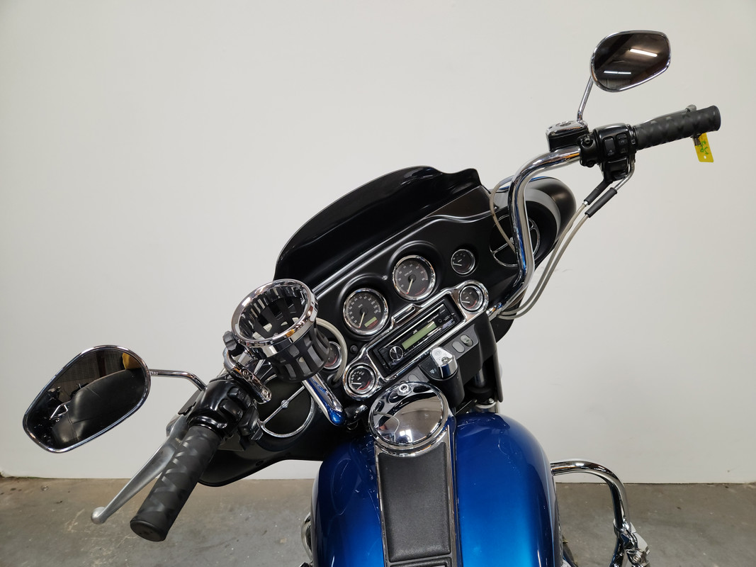 USED HARLEY ELECTRA GLIDE FOR SALE IN ELECTRIC BLUE WITH ONLY 32,229 MILES AND OVER $3,000 IN EXTRAS! THIS ONE IS A MUST-SEE! CHROME FRONT AND REAR WHEELS, CHROME FRONT END, BLACKOUT WINDSHIELD, JVC BLUETOOTH STEREO, 4 SPEAKERS, CUPHOLDER, HIGHWAY PEGS, AND THE DUAL VANCE AND HINES EXHAUST SOUNDS GREAT! JUST SERVICED AT DEALERSHIP, INSPECTED, ALL FLUIDS CHANGED, RUNS STRONG, EVERYTHING WORKS, NEEDS NOTHING! THIS IS ONE CLEAN, SHARP BIKE FOR THE MONEY! STAND OUT FROM THE CROWD!