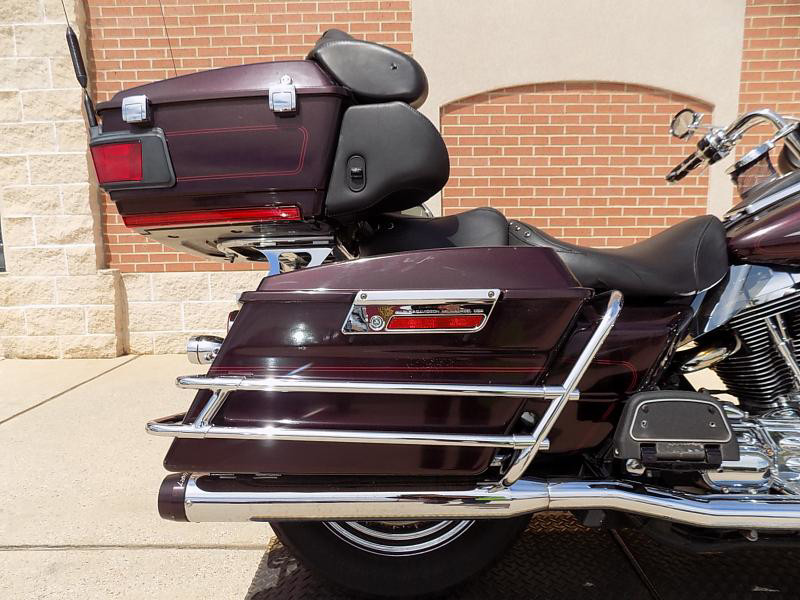 The 2006 Harley-Davidson Electra Glide Ultra Classic (EFI) Touring motorcycle is a stunning example of American craftsmanship combined with powerful performance and timeless style. This particular bike comes in a striking Black Cherry color adorned with a sophisticated pinstripe that accentuates its classic lines and curves, making it a head-turner on the road.
