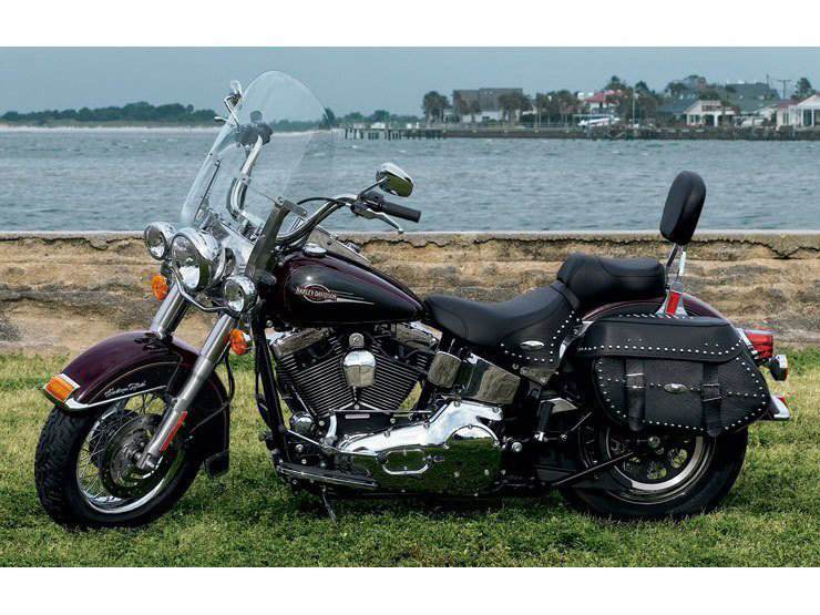 In the saddle of a Harley-Davidson® Softail®, no road is ever lonely. Sunlight breaks through treetops to dance on chromed steel. The wind offers its constant stream of praise. And the world unfolds before you with open arms. Maybe it’s because nothing else on the road compares with the timeless hardtail styling ... and nothing else feels like a Twin Cam 88B™ power mill rigid-mounted to the frame. Counterbalancing takes care of all but the good vibrations. You and the motorcycle become one, united by an unbreakable bond. Then you feel the hidden rear suspension smooth out the ride with a full 4" of travel. There’s no denying you’re in the saddle of a rolling masterpiece. This year, the Softail family of custom motorcycles welcomes its latest member. We invite you to turn the page and take a gander at the clean lines of the new Heritage Softail®. Additionally, all new bobtail models get a shot of adrenaline in the hindquarters — a brawny, road-hugging 200mm tire under a new wider fender. More rubber to stick to the pavement. More style to keep the eyes glued.