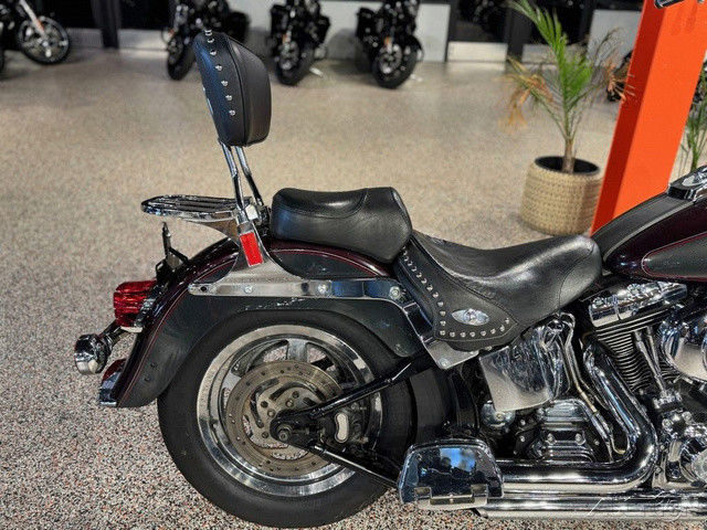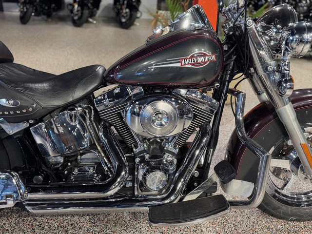 2006 Harley-Davidson® Softail® Heritage ClassicDesigned to offer comfortable touring accommodations with early dresser styling, the FLSTC/I Heritage Softail® Classic features ample, 1950s-style leather saddlebags, the protection of a detachable windshield, touring handlebars and a comfortable passenger position with backrest. Laced wheels, passing lights, studded-leather trim and a full-skirted FL front fender over a fat Touring front tire complete a look thatÕs truly classic, but also comfortable for the long road ahead.