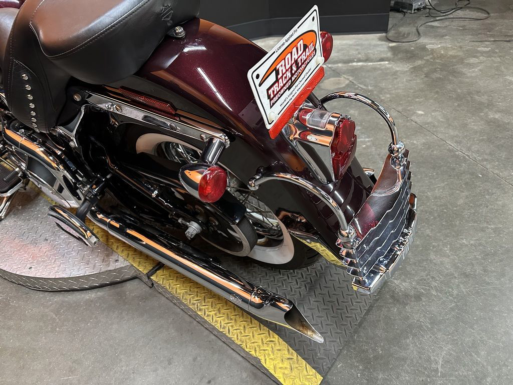 ONLY 46,536 MILES, VANCE AND HINES FISHTAIL EXHAUST, HIGH FLOW INTAKE, UPGRADED BIG HANDLEBARS, HD PROFILE WHEELS, RIDER AND PASSENGER CHROME FLOORBOARDS, CHROME REAR FENDER GUARD AND TRIM, CHROME FRONT FENDER RAILS, CRASHBAR, HIGHWAY PEGS, HD WILLIE G GAS CAP, UPGRADED GRIPS, MIRRORS, HORN COVER, LINKAGE, AND SIDE STAND, FRONT FENDER LIGHT, CHROME TOOL BOX, HD UPGRADED STUDDED TOUR SEAT, AND NEW WIDE WHITE WALL TIRES! CLEAN AND LOADED CLASSIC SOFTAIL SPRINGER!