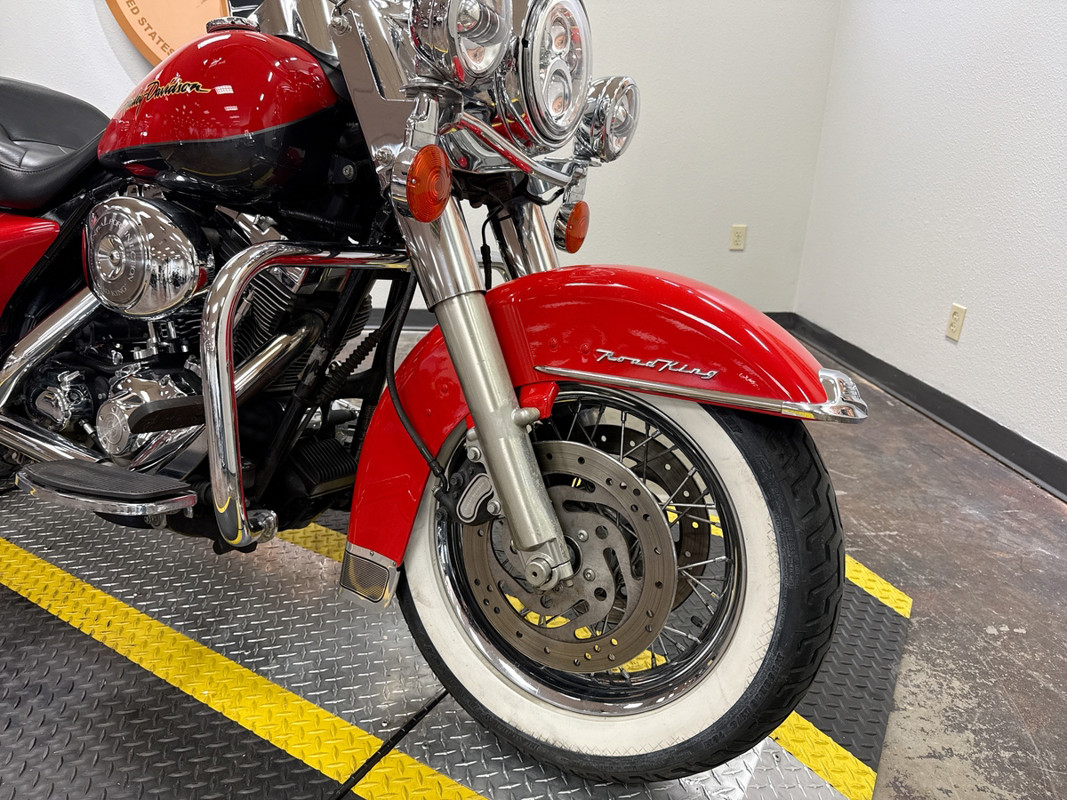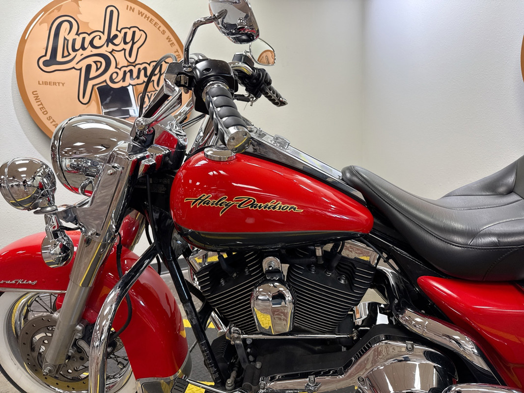 Classic Road King styling with timeless two-tone paint and white walls — and priced at just $7,995. With 32,874 miles, this one hits the sweet spot: broken in properly, but nowhere near done. This 2006 Harley-Davidson Road King in factory Red Charcoal with pinstripe is powered by the 88ci Twin Cam engine, delivering that unmistakable Harley-Davidson torque and touring comfort. If you’ve been searching for a traditional FLHR Road King with real character, this is it.