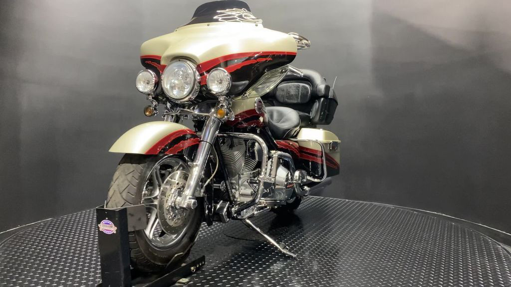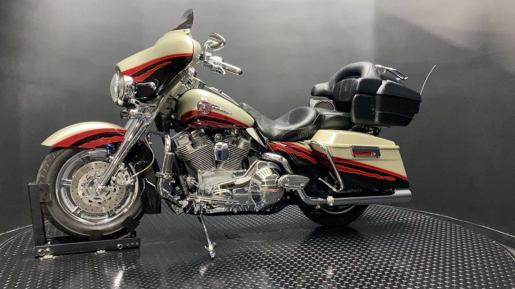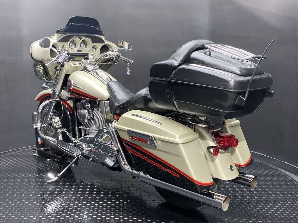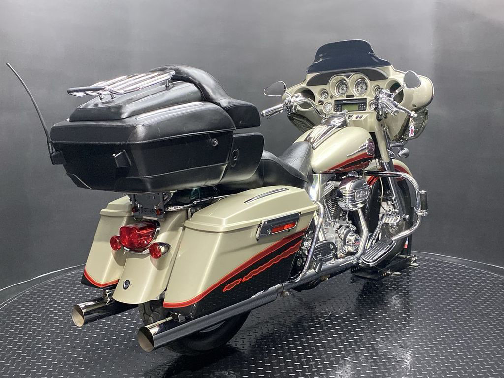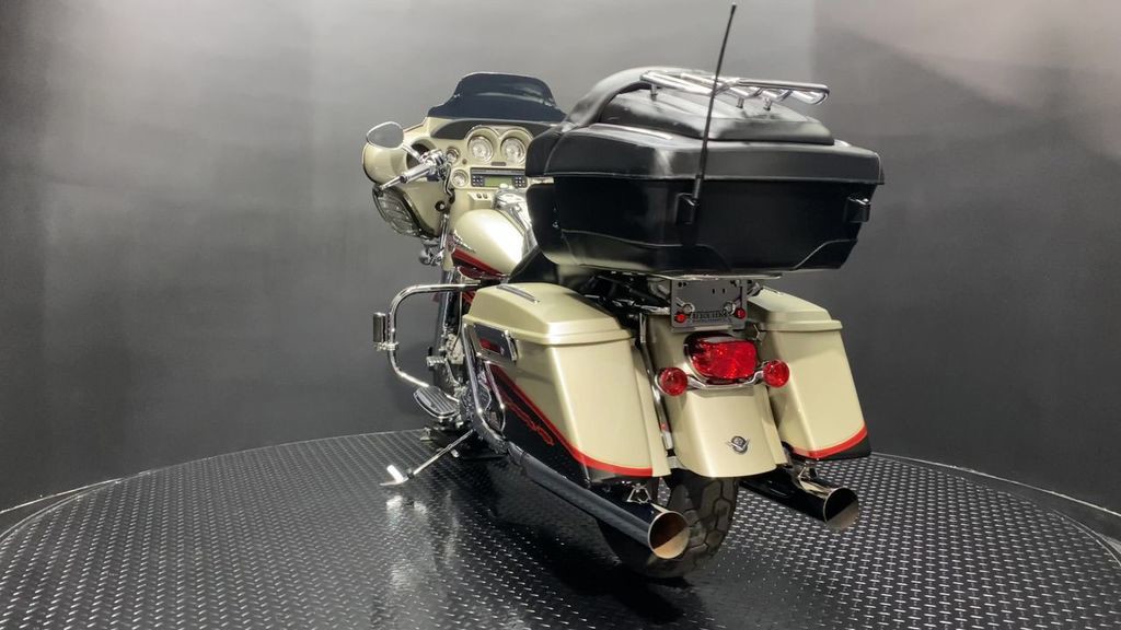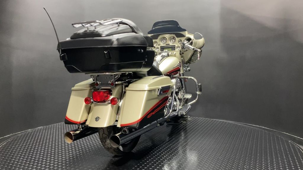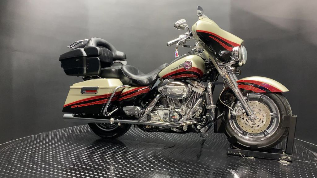 YOU ARE LOOKING AT A 2006 HARLEY DAVIDSON CVO ELECTRA GLIDE ULTRA CLASSIC (FLHTCUSE) WITH 28,906 MILES ON IT. IT IS AUTUMN HAZE AND VIVID BLACK IN COLOR AND POWERED BY A 1690CC (103") FUEL INJECTED ENGINE AND 5 SPEED TRANSMISSION. THE BIKE COMES WITH CRUISE CONTROL, HEATED GRIPS, HEATED SEATS, AND 1 KEY. THERE ARE NO SCRATCHES, DENTS, OR DINGS THAT I CAN FIND WITH THE EXCEPTION OF TOUCHUPS ON THE FRONT FAIRING, SADDLEBAGS, AND SCUFFS ON THE LEATHER TOUR TRUNK. THE CHROME AND ALUMINUM ARE IN GOOD CONDITION WITH THE EXCEPTION OF FLAKING ON THE DERBY COVER AND PASSENGER FLOORBOARDS. THE TIRES HAVE GOOD TREAD LEFT ON THEM.