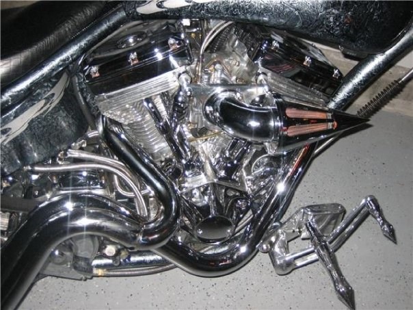 2006 Custom Built Pro-Street Southern Motorcycle Works (SMW) Godfather, 300 series Avon Venom Rear tire, softail with air suspension, 1850cc polished Ultima Motor (113"), 6 speed RSD cable transmission, 3" BDL open primary, martin brothers exhaust, House of Colors custom paint, Iron Cross headlight with LED conversion kit, white LED lights around the engine, digital speedometer/odometer.