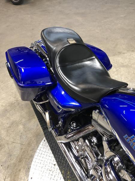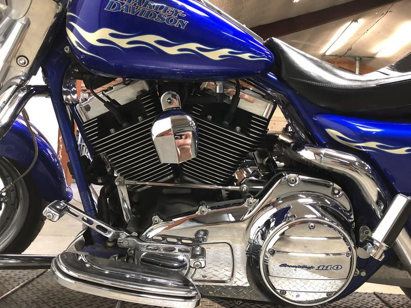 WITH THE 110 CUBIC INCH SCREAMING EAGLE MOTOR! HARD TO FIND BIKE IN HARD TO FIND COLOR! TAKE A CLOSE LOOK AT THIS ONE. CHROME WHEELS, CHROME FRONT END, CHROME LEVERS, CHROME SWITCH HOUSING, UPGRADED FLOOR BOARD, UPGRADED LOWER CONTROLS, SCREAMING EAGLE INTAKE, AND THE DUAL RINEHART EXHAUST SOUNDS GREAT! THIS IS ONE SHARP, CLEAN SCREAMING EAGLE ROAD KING! WHAT A COOL BIKE FOR THE MONEY!