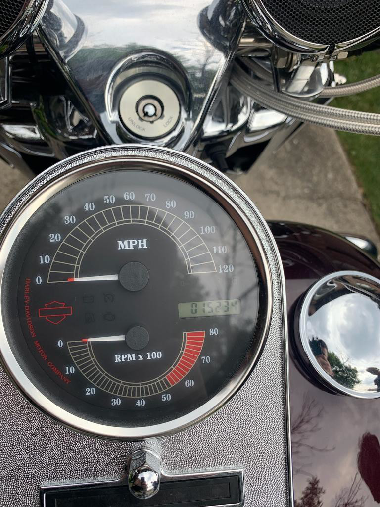 Rhinehard exhaust pipes; power commander module; full engine chrome package; stereo sound system; 103 cubic inch engine heads larger; custom handgrips with chrome handles