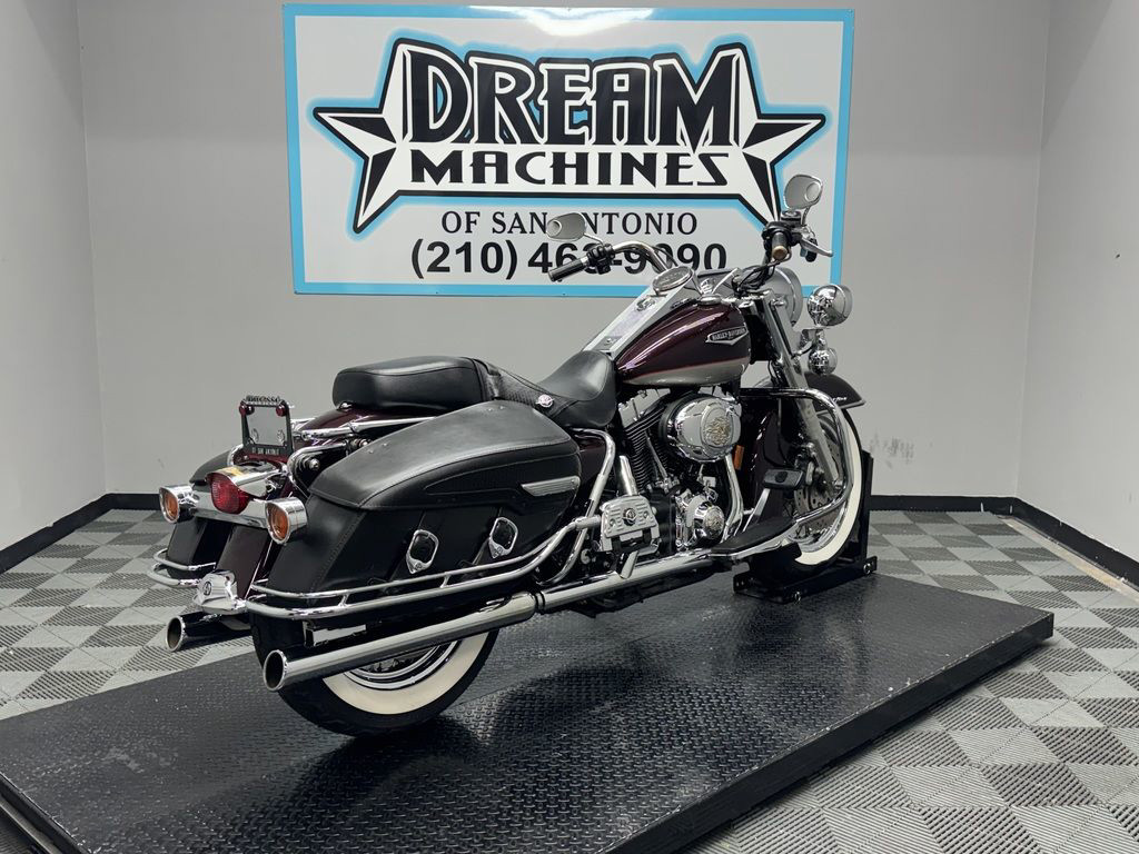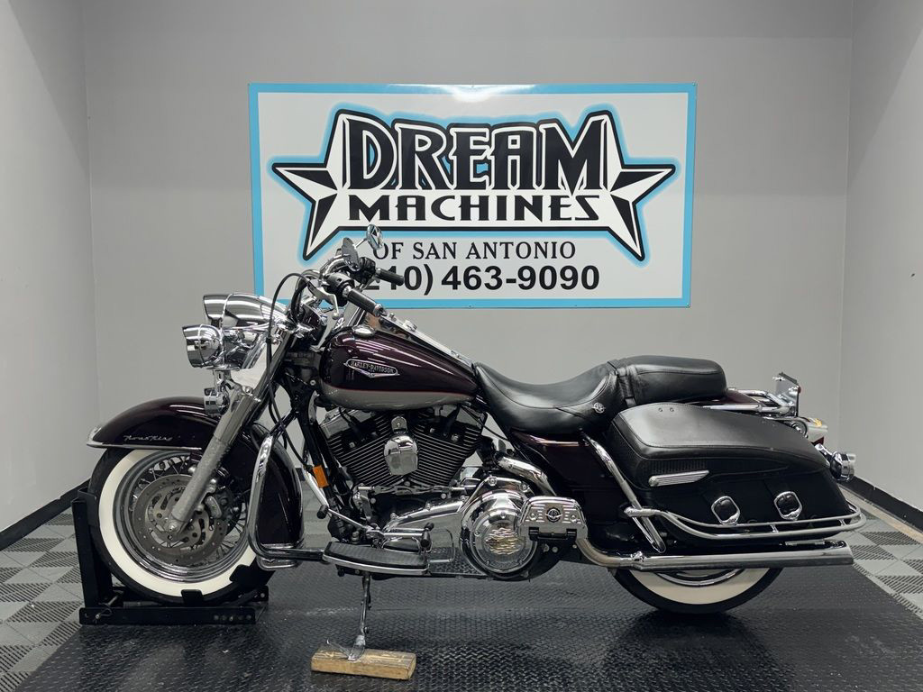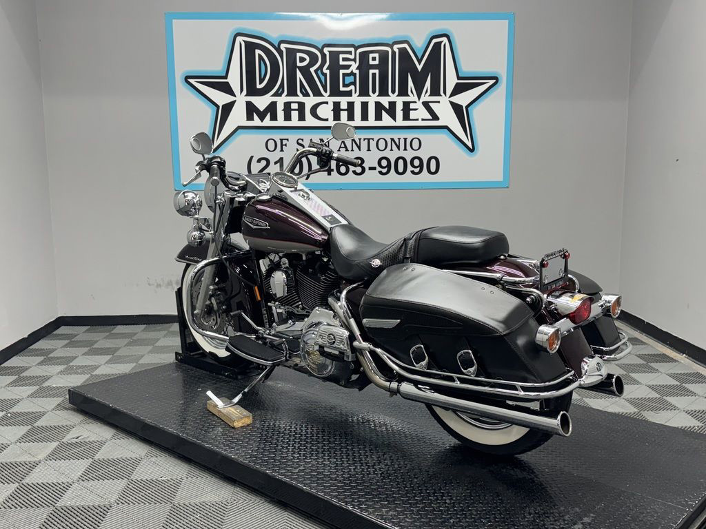 *BOOK VALUE IS $6,445 SHIPPING, LEASING, FINANCING AND EXTENDED WARRANTY MAY BE AVAILABLE! YOU ARE LOOKING AT A 2007 HARLEY DAVIDSON ROAD KING CLASSIC (FLHRC) WITH 15,423 MILES ON IT. IT IS BLACK CHERRY AND PEWTER PEARL IN COLOR AND POWERED BY A 1584CC (96") FUEL INJECTED ENGINE AND 6 SPEED TRANSMISSION. THE BIKE COMES WITH CRUISE CONTROL, 2 KEYS, 1 FOB, AND FACTORY SECURITY SYSTEM. THERE ARE SOME EXTRAS ON THE BIKE WHICH INCLUDE PERFORMANCE SLIP-ON MUFFLERS ($399.95), DERBY COVER ($58.95), TIMER COVER ($28.95), AIR CLEANER BADGE ($43.95), SADDLEBAG GUARD RAILS ($339.95), HEADLIGHT/PASSING LAMP TRIM RINGS ($102.95), SHIFTER LINKAGE ($99.95), AND GRIPS ($79.95).THERE ARE NO DENTS OR DINGS THAT I CAN FIND. THERE ARE SMALL SCRATCHES ON THE FRONT FENDER, TANK, REAR FENDER, AND SCUFFS ON THE LEATHER SADDLEBAGS. THE CHROME AND ALUMINUM HAVE OXIDATION ON THE FORK LOWERS, FLAKING ON THE MASTER CYLINDER, AND OXIDATION ON REAR FENDER BOLTS. THE TIRES HAVE GOOD TREAD LEFT ON THEM.