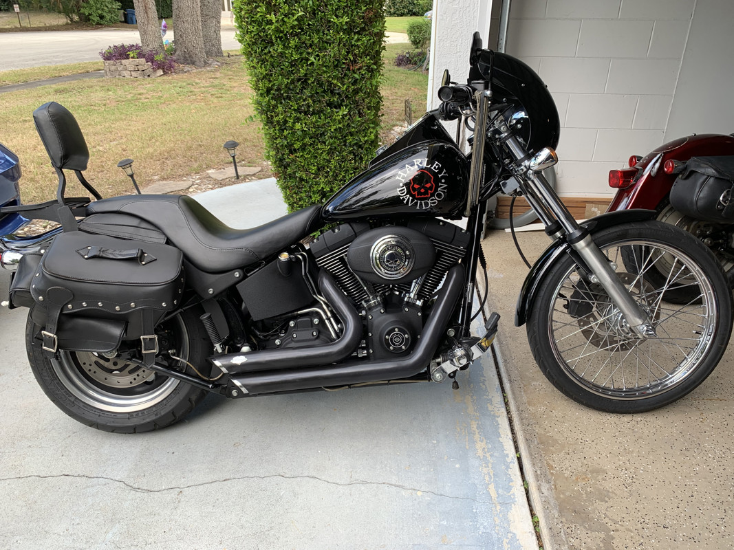 2007 Harley Davidson FXSTB Nightrain, LOW mileage, 96 ci, 6 speed. Includes Custom paint, grips, Vance Hines, Ceramic covered, exhaust, with Outlaw fairing. Frame mounted tool kit, saddle bags, backrest and luggage rack also included. Recent fluid service, equipped with new tires and brake pads. A "Black Beauty," that runs like a "Bat out of Hell." Priced to sell." Only serious inquires, please. BTW, just in time for "Biketoberfest," next month and this Motorcycle is garaged less than 30 minutes from Venues. "Just Saying"