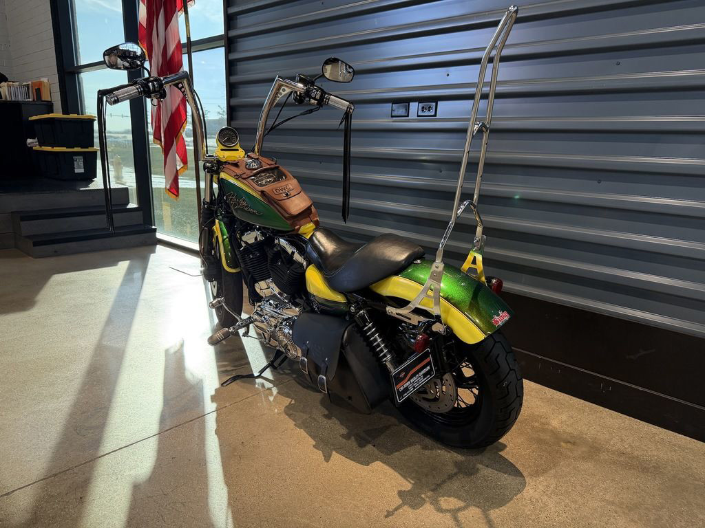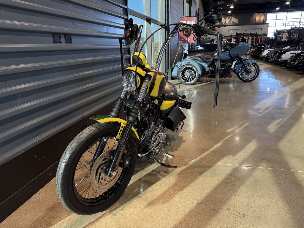 With enough grit to put the edge back on a blade, it's the rawest bare-knuckled 1200cc Sportster® model yet. Chopped front and rear fenders. Side-mount license plate. Stop-tail-turn lights. Low 25.3" seat height. Old School front fork gaiters. Rawboned graphics and a new finish on its V-Twin Evolution® engine. And just for good measure, black throughout