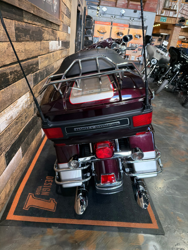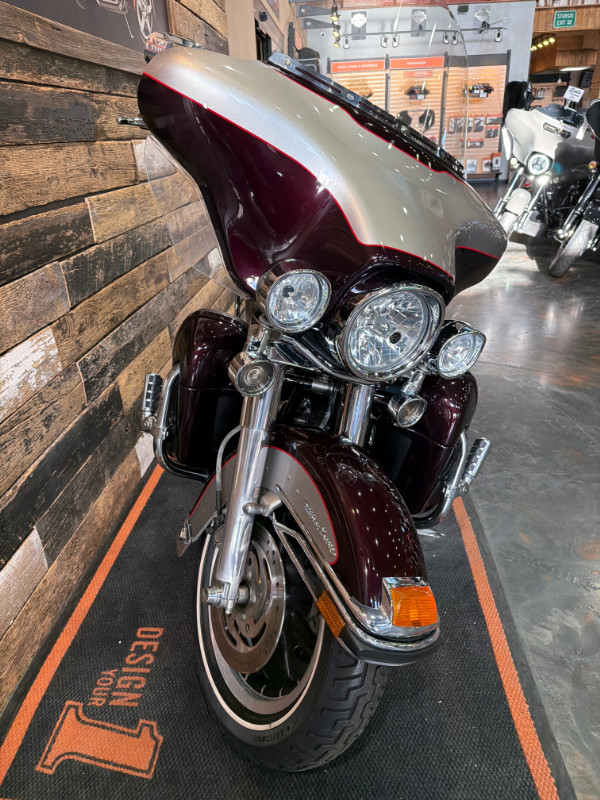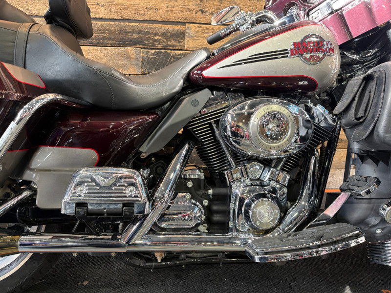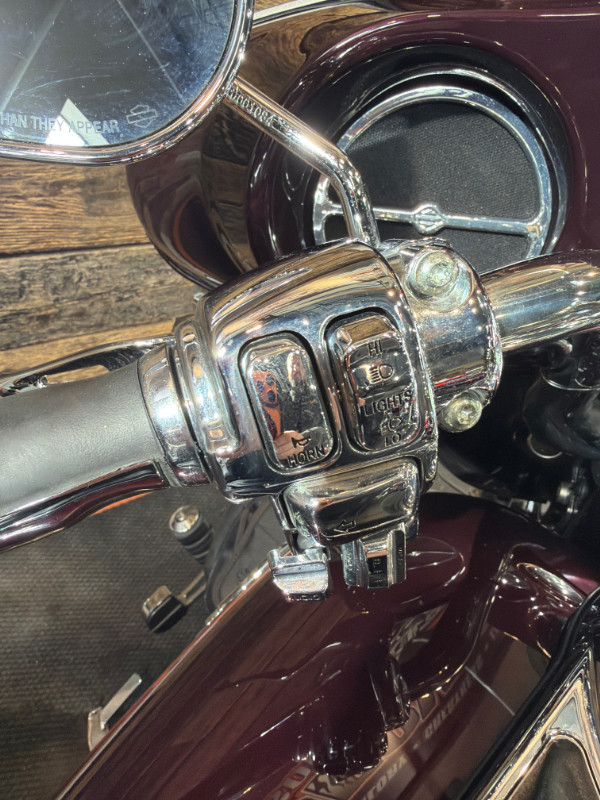 This bike comes with the Twin Cam 96 Engine, 6-Speed Transmission, H-D Gauges, Vance and Hines Slip On's, Painted to Match Inner Fairing, Slotted Windshield Trim, Chrome Fender Trim, Highway Mounts and Pegs, H-D Visors: Rear Turn Signals, Headlamp, Passing Lamps, and Front Turn Signals; Luggage Rack, Smoked Rear Turn Signals, Chrome Passenger Board Covers, Chrome Front Brake Master Cylinder, Chrome Switch Housings, Chrome Levers, Chrome Key Caps, H-D Grips, Chrome Front Axle Covers, H-D Nostalgic Collection: Footboard Inserts, Brake Pedal, Passenger Board Inserts, Shifter Pegs; and more.
