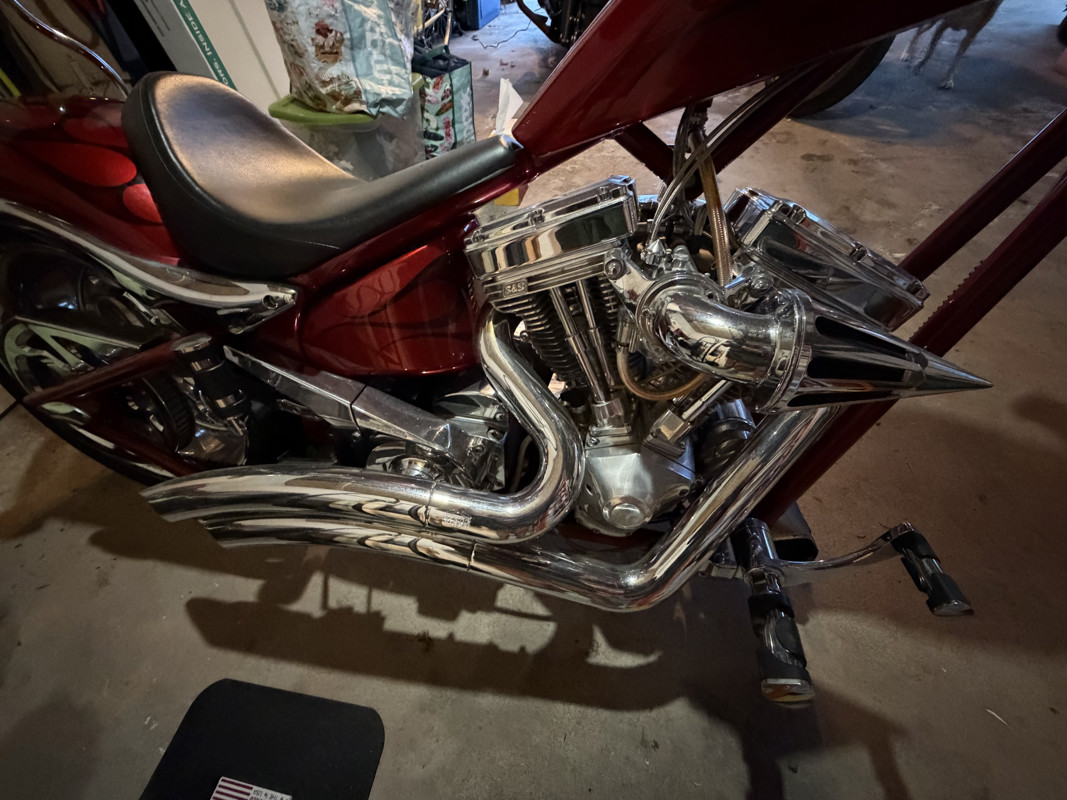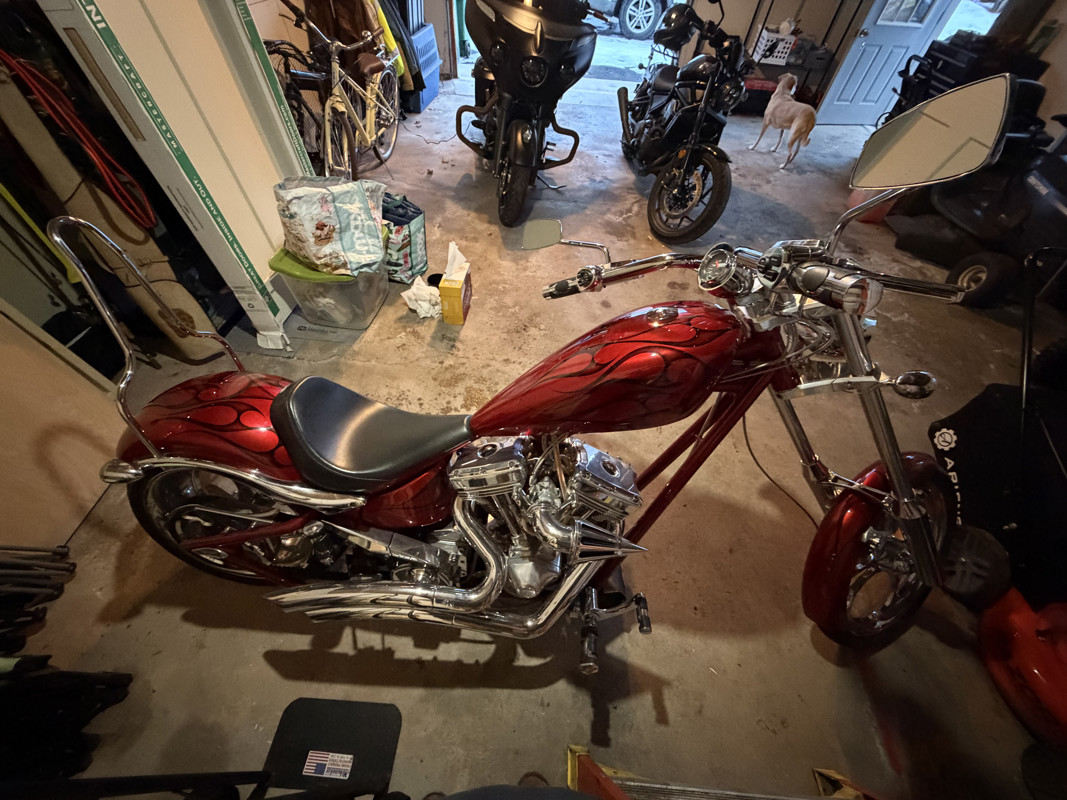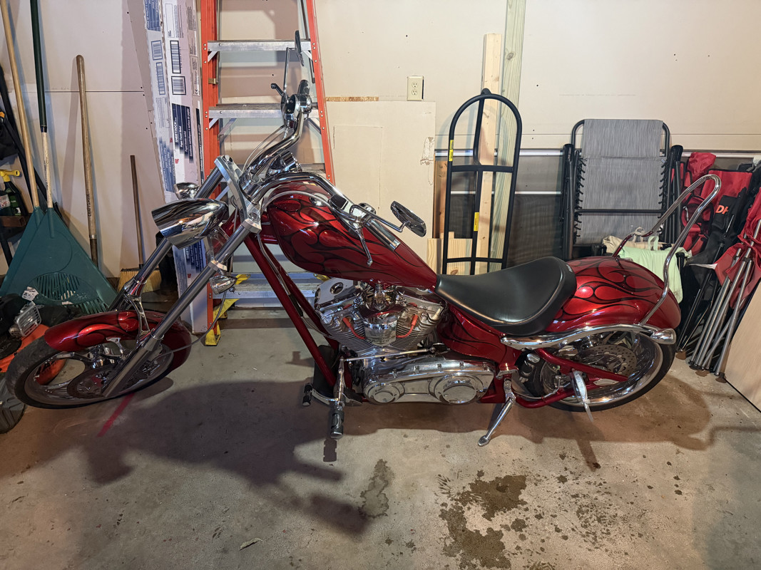 2008 Big Dog k-9 chopper with only 5,200 miles, clean title, and in excellent condition. This bike runs and rides like new and has been very well taken care of and garage kept. The red custom paint with flame detail looks incredible, the chrome shines, and the motor is strong and smooth. Starts easy, idles clean, and rides exactly how a Big Dog should. This bike will turn heads.