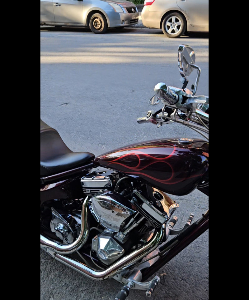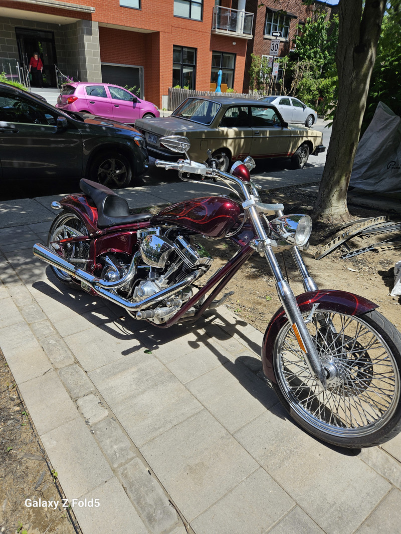 I am selling a Big Dog Mutt 1907cc. Everything on the bike has been redone apart from the paintwork. The wiring, headlight, saddle and engine have all been reconditioned, and the rear tyre and belt have been completely replaced. The pulley that drives the belt has also been replaced. I have an invoice for the work carried out by Motorcycle Support in Montreal and CMR Custom Montreal