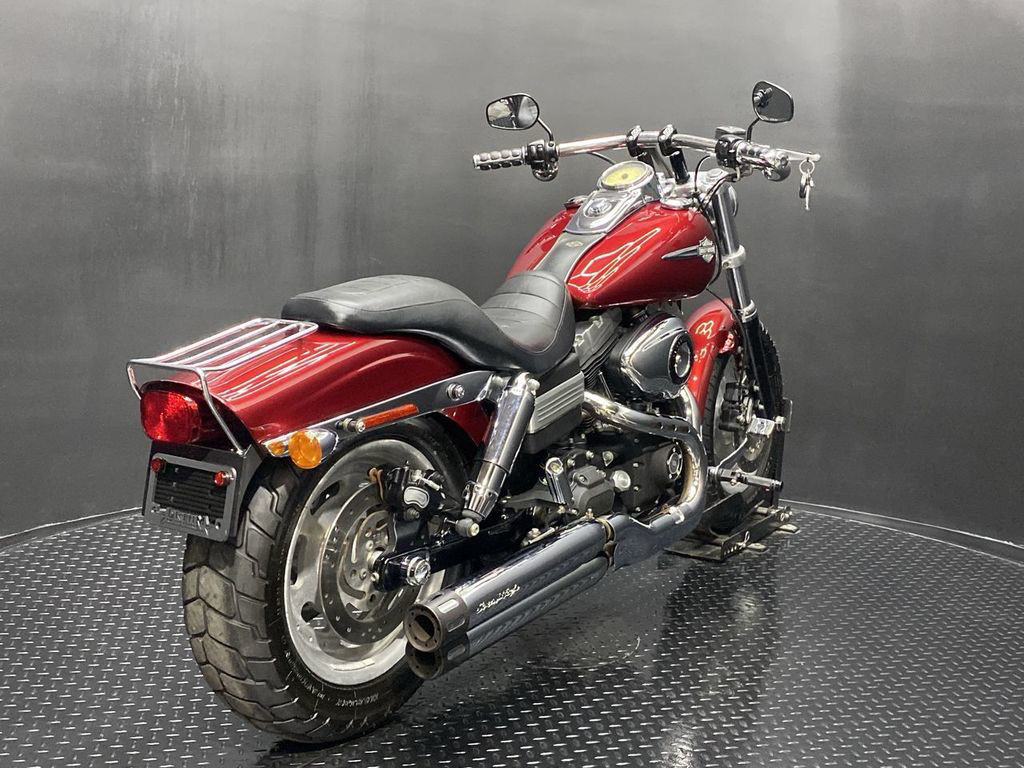YOU ARE LOOKING AT A 2008 HARLEY DAVIDSON DYNA FAT BOB (FXDF) WITH 44,028 MILES ON IT. IT IS CANDY RED SUNGLO IN COLOR AND POWERED BY A 1584CC (96") FUEL INJECTED ENGINE AND 6 SPEED TRANSMISSION. THE BIKE COMES WITH 1 KEY, 1 FOB, AND FACTORY SECURITY SYSTEM. THERE ARE SOME EXTRAS ON THE BIKE WHICH INCLUDE SCREAMIN' EAGLE SLIP-ON MUFFLERS ($424.95), LUGGAGE RACK ($149.95), FRONT/REAR AXLE BOLT COVERS ($79.90), DRIVER/PASSENGER PEGS ($139.95), BRAKE/SHIFTER PEDAL ($58.90), AND GRIPS ($79.95). THERE ARE NO SCRATCHES, DENTS, OR DINGS THAT I CAN FIND WITH THE EXCEPTION OF A SMALL TOUCHUP ON THE REAR FENDER. THE CHROME AND ALUMINUM HAVE ROCK CHIPS ON THE FORK LOWERS AND SCRATCHES ON THE DERBY COVER. THE TIRES HAVE GOOD TREAD LEFT ON THEM.
