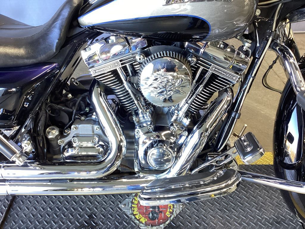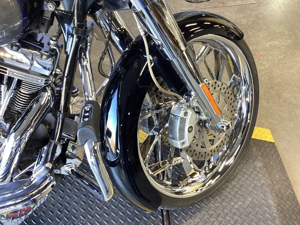 WOW FACTOR! ONLY 43,821 MILES, 110" SCREAMIN EAGLE MOTOR, 23" AND 18" AFTERMARKET CHROME WHEELS, MATCHING CHROME FRONT ROTORS, CUSTOM WRAP STYLE FRONT FENDER, AFTERMARKET 2 INTO 1 EXHAUST, UPGRADED HIGH FLOW INTAKE, UPGRADED BIG HANDLEBARS, BRAIDED LINES, LED HEADLIGHT, LED LIGHTBAR, CRASHBAR, RIDERS BACKREST, QUICK DETACHABLE PASSENGER BACKREST, WINDSHIELD, RAM MOUNT, ABS, SECURITY, CRUISE CONTROL, 6 SPEED TRANS, NEW CAM CHAINS, NEW CAM CHAIN TENSIONERS, NEW S&S ADJUSTABLE PUSHRODS, AND DRESSED IN FACTORY CVO CHROME! CLEAN AND LOADED CUSTOM CVO BAGGER!