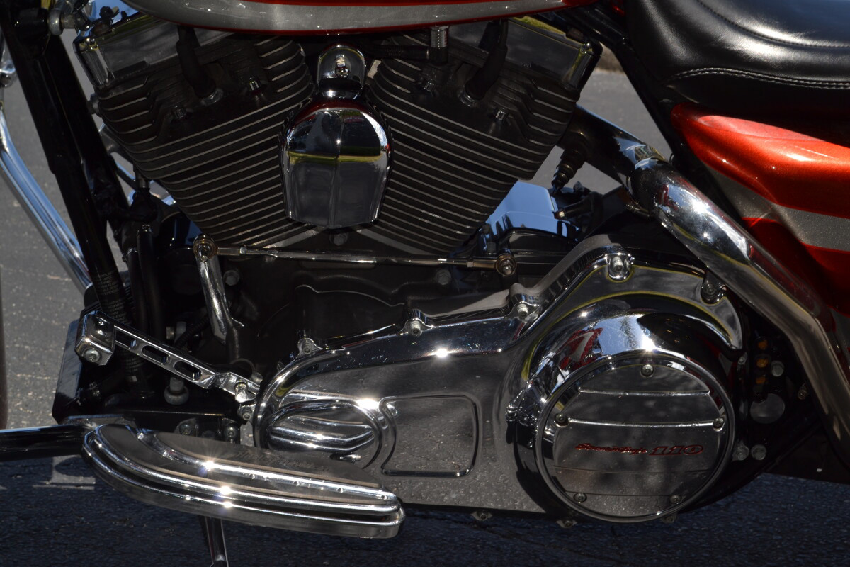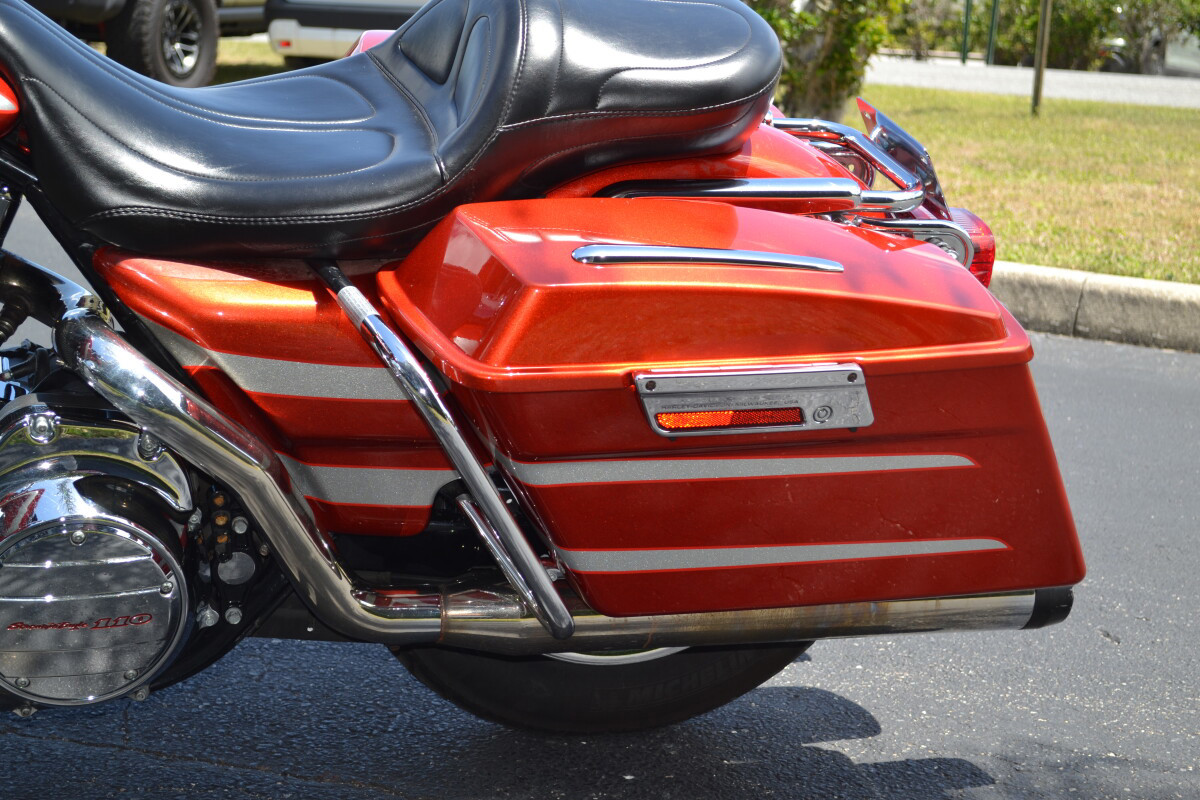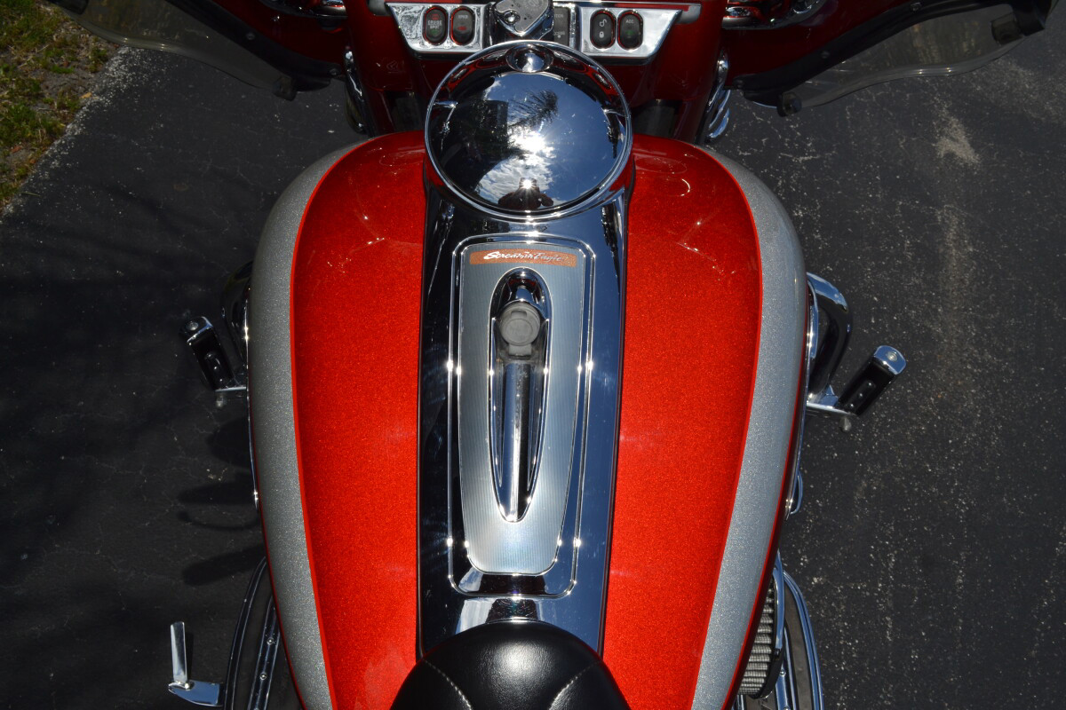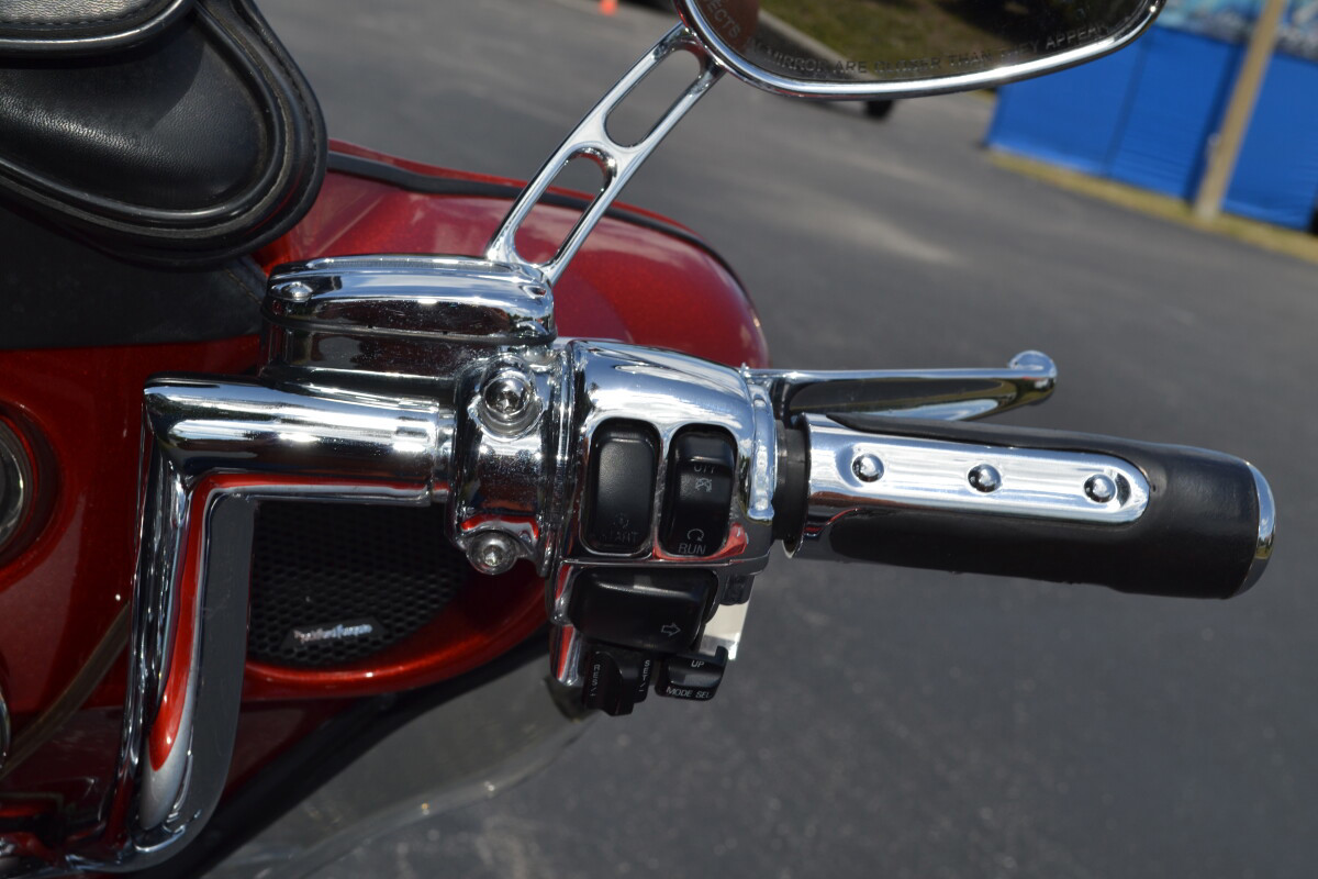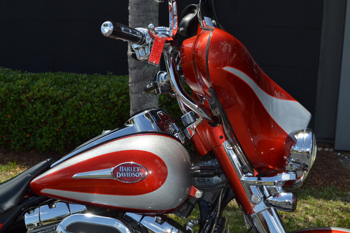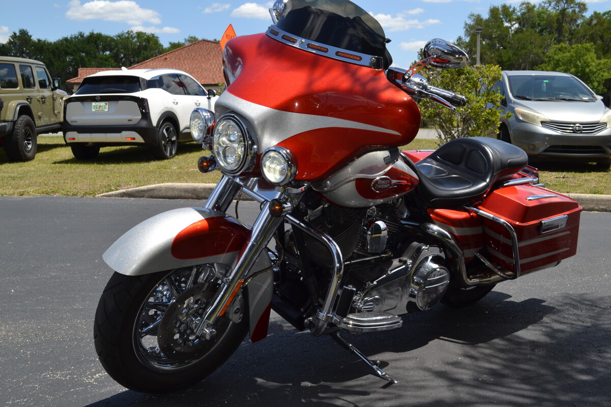 The 2008 Harley-Davidson Screamin’ Eagle Ultra Classic (FLHTCUSE3) is a top-tier CVO touring motorcycle equipped with a 110 cubic inch Twin Cam V-twin engine and a 6-speed Cruise Drive transmission. It features standard ABS, a 6-gallon fuel tank, premium paint, heated grips/seats, and extensive chrome, designed for high-performance long-distance luxury.