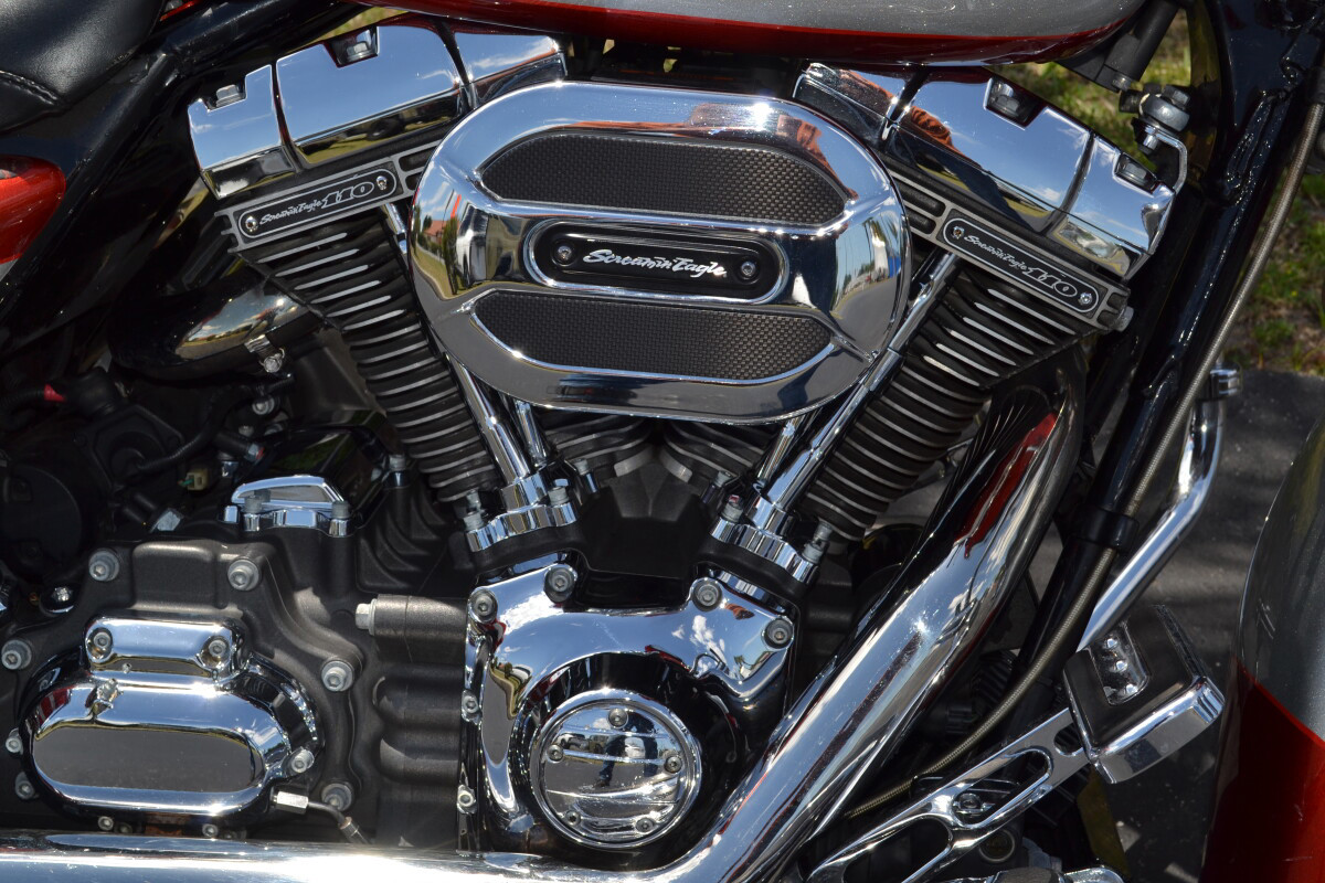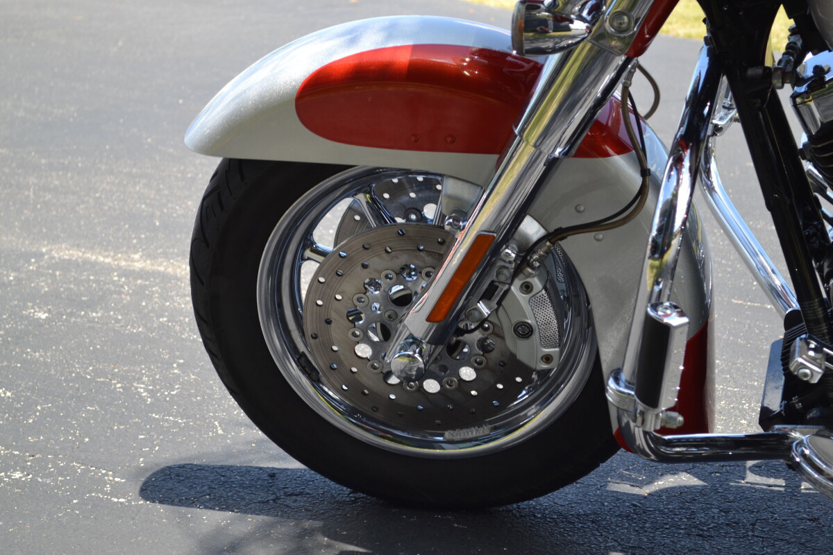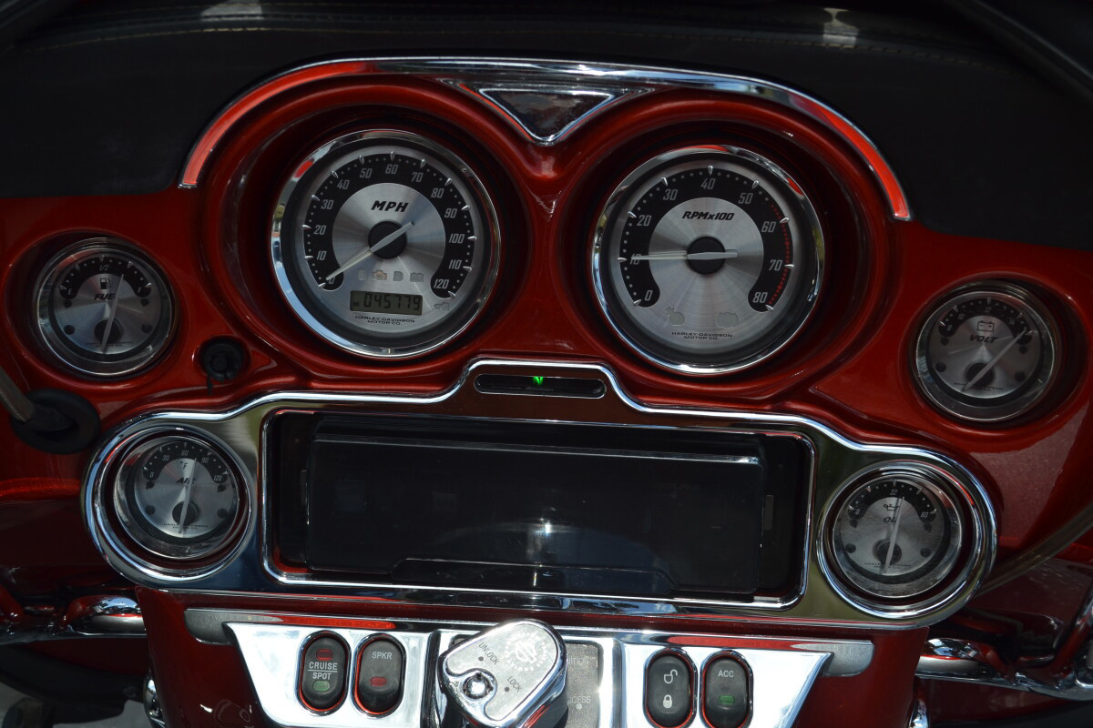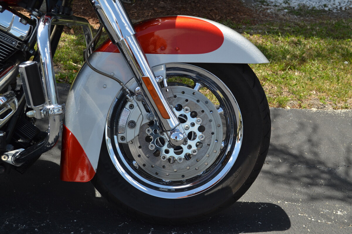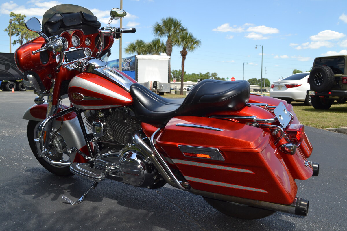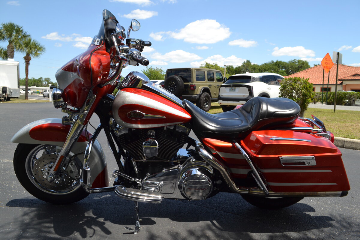 The 2008 Harley-Davidson Screamin’ Eagle Ultra Classic (FLHTCUSE3) is a top-tier CVO touring motorcycle equipped with a 110 cubic inch Twin Cam V-twin engine and a 6-speed Cruise Drive transmission. It features standard ABS, a 6-gallon fuel tank, premium paint, heated grips/seats, and extensive chrome, designed for high-performance long-distance luxury.