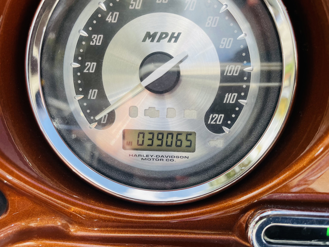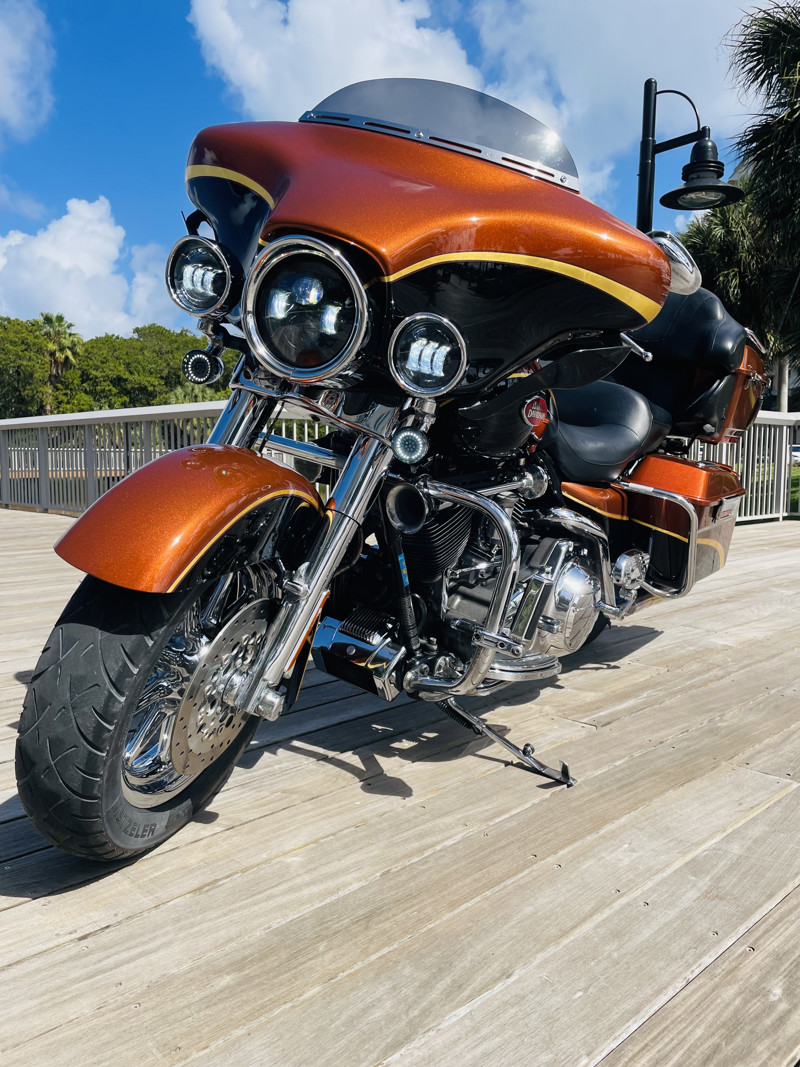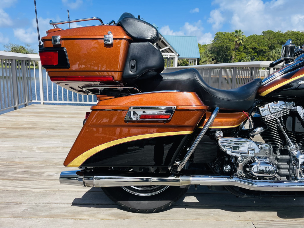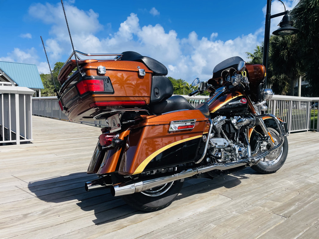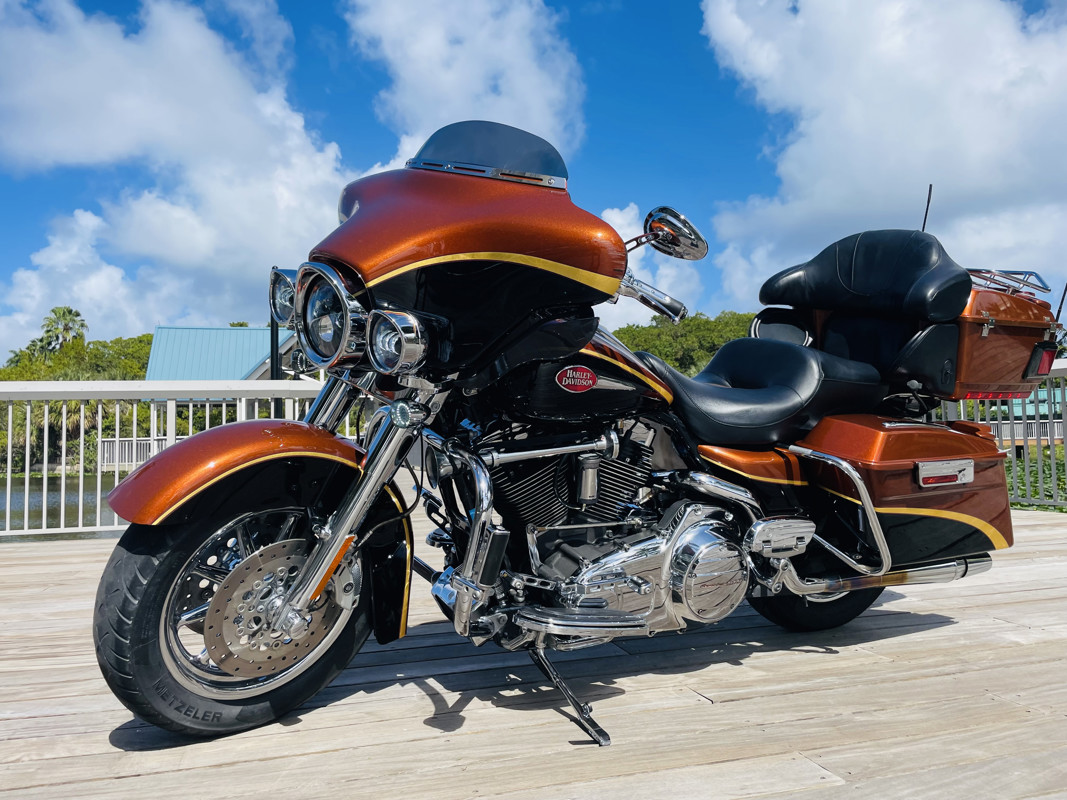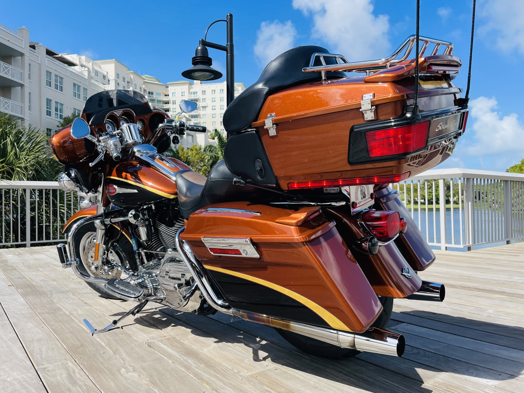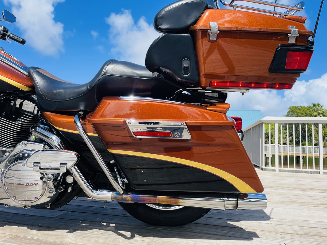 This is the hand-built CVO (Custom Vehicle Operations) super exclusive edition of the Ultra Classic Electra Glide. Low 39K miles with virtually no flaws except an unfortunate scrape on the left fairing passing the garage wall. Adult owned and lowed this bike shows like a brand new one with no true signs of aging. Finished in CVO color: Crystal Copper with Onyx Black. New front tire is ordered and will be installed before delivery! This bike needs nothing but a rider who will enjoy this bike for thousands more miles and will add to the story. Pictures rarely do the CVOs justice. The paint combinations are typically exceptional and all finishes high end. Today the CVO Electras’ range at $50,000.
