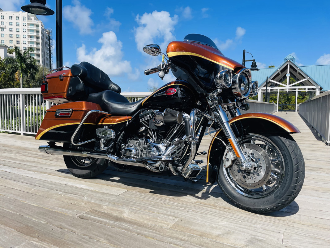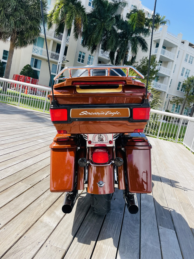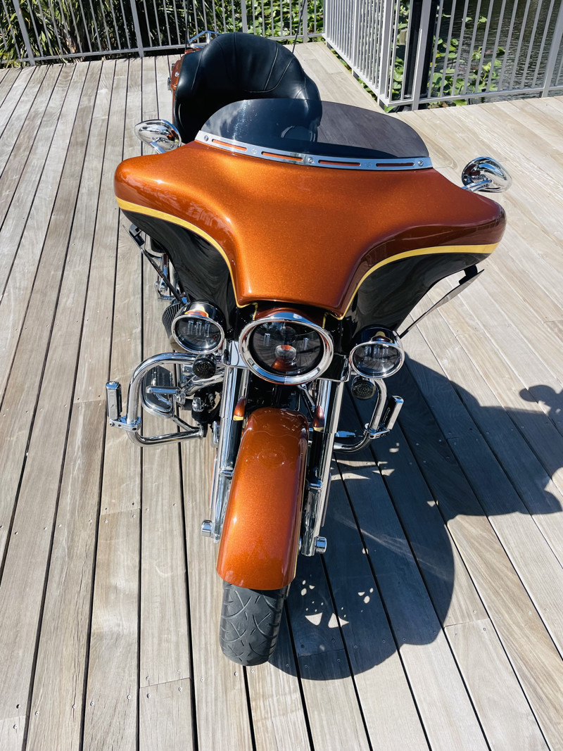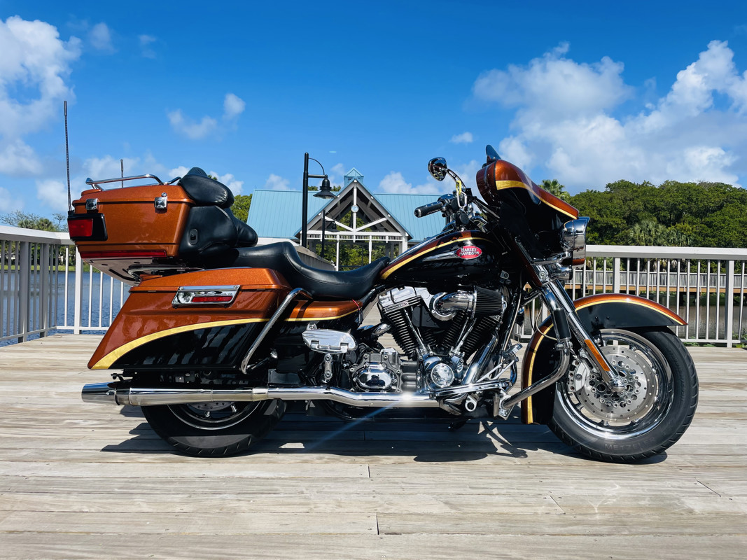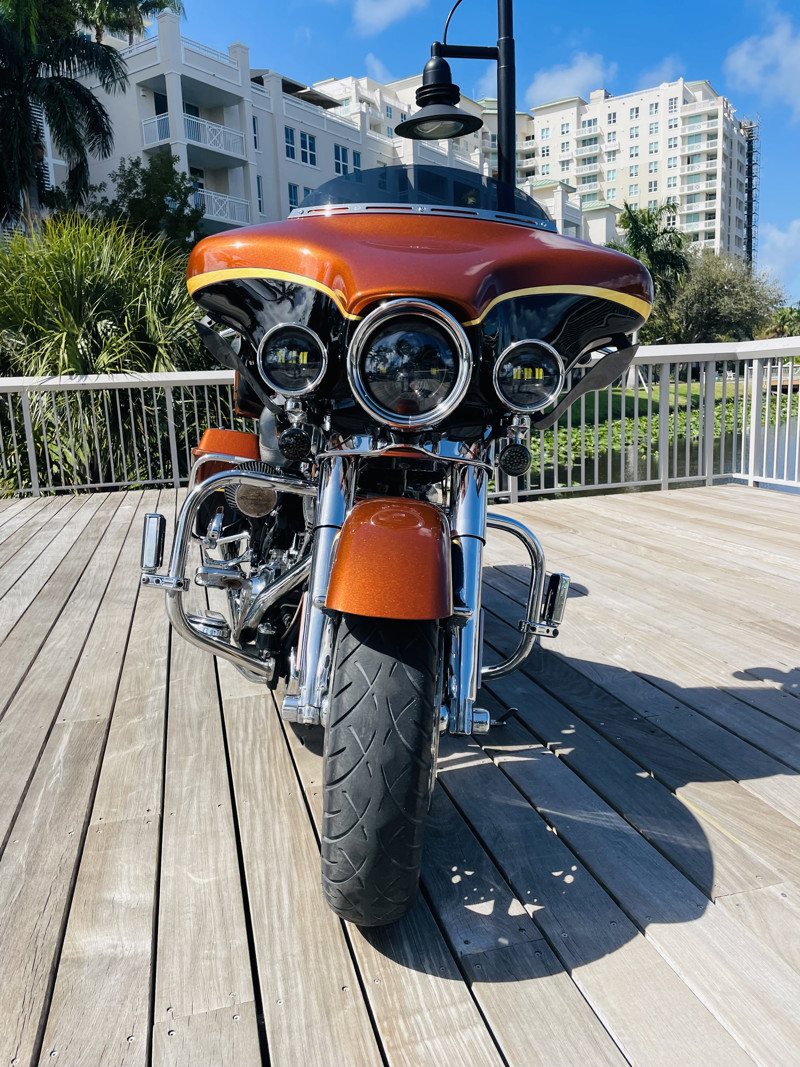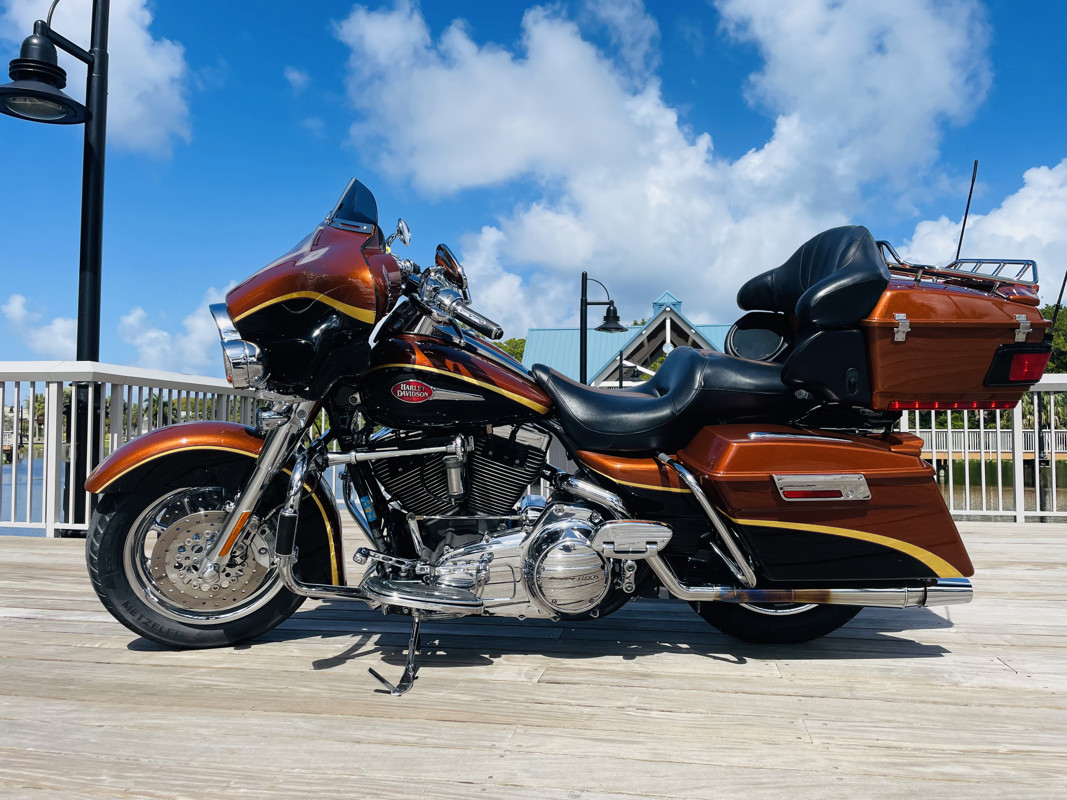 This is the hand-built CVO (Custom Vehicle Operations) super exclusive edition of the Ultra Classic Electra Glide. Low 39K miles with virtually no flaws except an unfortunate scrape on the left fairing passing the garage wall. Adult owned and lowed this bike shows like a brand new one with no true signs of aging. Finished in CVO color: Crystal Copper with Onyx Black. New front tire is ordered and will be installed before delivery! This bike needs nothing but a rider who will enjoy this bike for thousands more miles and will add to the story. Pictures rarely do the CVOs justice. The paint combinations are typically exceptional and all finishes high end. Today the CVO Electras’ range at $50,000.