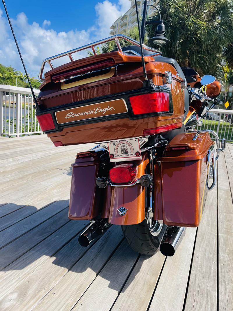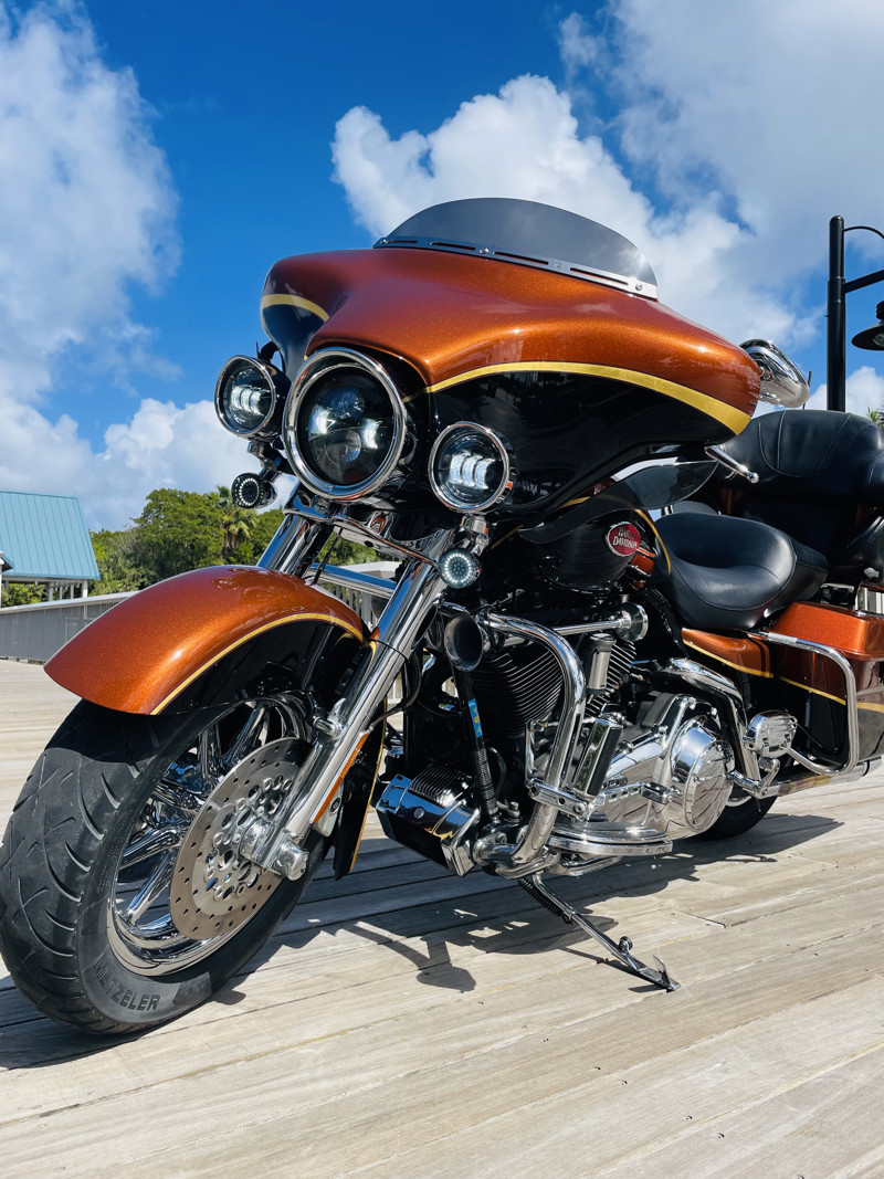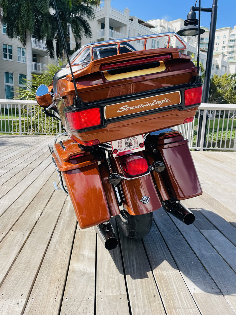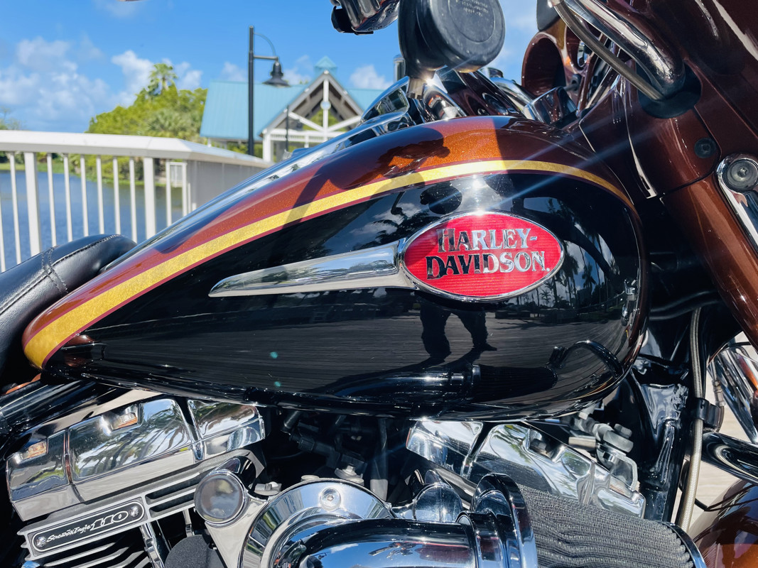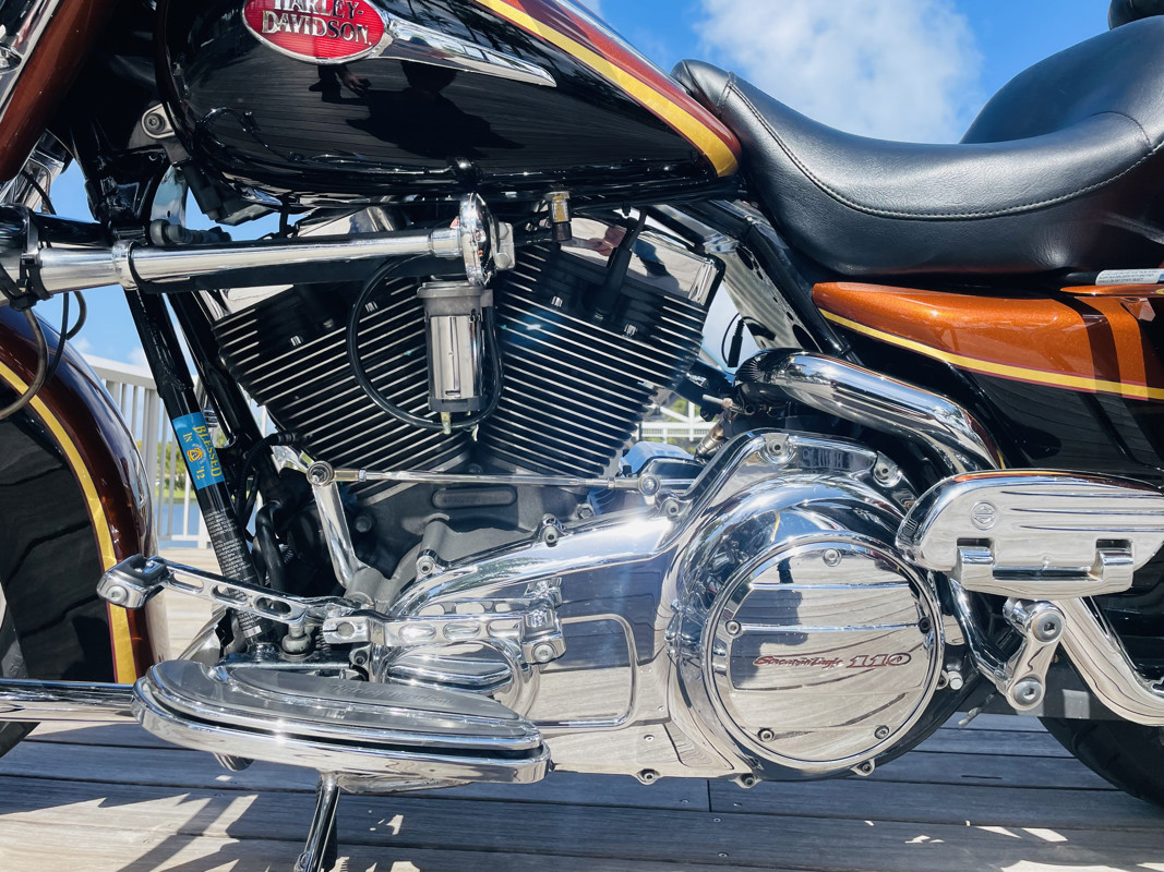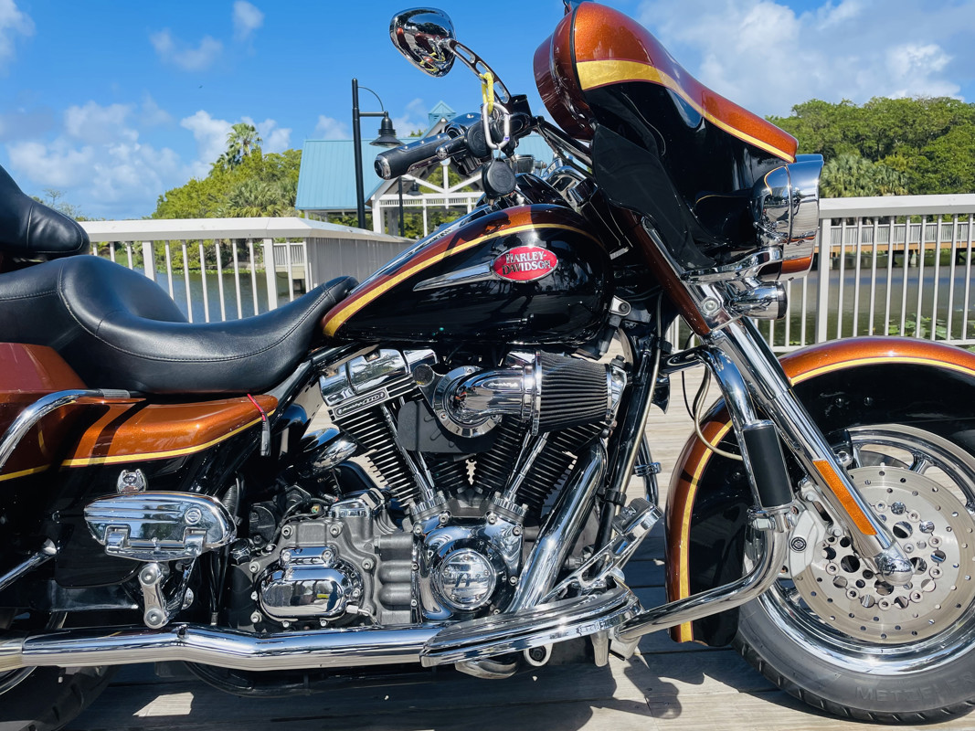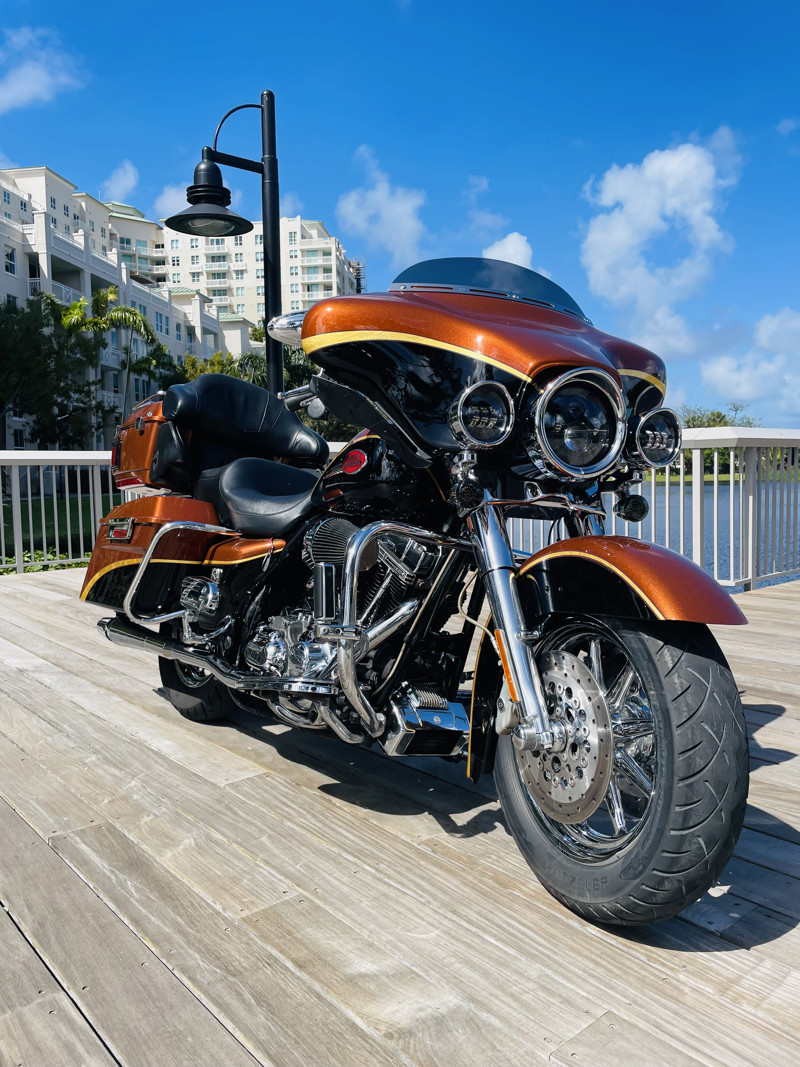 This is the hand-built CVO (Custom Vehicle Operations) super exclusive edition of the Ultra Classic Electra Glide. Low 39K miles with virtually no flaws except an unfortunate scrape on the left fairing passing the garage wall. Adult owned and lowed this bike shows like a brand new one with no true signs of aging. Finished in CVO color: Crystal Copper with Onyx Black. New front tire is ordered and will be installed before delivery! This bike needs nothing but a rider who will enjoy this bike for thousands more miles and will add to the story. Pictures rarely do the CVOs justice. The paint combinations are typically exceptional and all finishes high end. Today the CVO Electras’ range at $50,000.