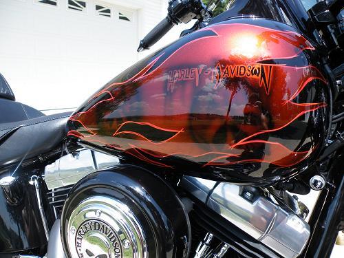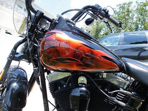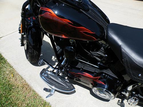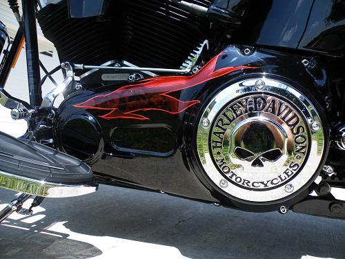 This bike is a factory Harley Davidson that is now a professionally custom designed, beautiful show bike that grabs the attention of everyone—it stops you in your tracks and makes you come back for a second look. Those who stop to look at the paint job will be impressed at the intricate details such as tribal tattoos buried under skulls, covered by mandarin orange candy with two-color hand painted slashed style pin stripping. Detailed paint work covers the gas tank, front/rear fenders and outer primary cover. The handle bar controls and components clutch and brake levers have been taken apart and painted gloss black with two coats of clear. The clutch and brake lever where machine drilled to give the girder style theme to match the custom mirrors and shift lever. The skull theme was carried throughout the bike with the Willie G. Skull Collector Series of caps and covers along with the Kuryakyn Zombie Series floor boards, foot pegs and shifter and brake pedals. The bike also has chrome frame inserts, chrome rear pulley bolt kit, chrome bezels and bolts for rear fender support and a chrome bolt kit for outer primary. It also has a rear detachable crossbones edition sissy bar and matching back pad. The seat has been changed to be much more comfortable to drive with a 2009 Fatboy seat and pad. The bike has a custom billet head light, along with a detachable Harley Davidson windshield kit so that you can remove the windshield when you want to enter it in shows. I chose to go with a set of Vance & Hines black ceramic coated short shots with chrome tips. It has an Arlen Ness stage one air cleaner kit and Vance & Hines fuel pack engine programmer Please look over the pictures of all the parts invoices and prices put in to customizing this bike. The paint job on this bike would normally range from $2500 to $3000. Suggested retail on this bike new is $17,200. With all the accessories and custom paint the bike is worth $23,000.