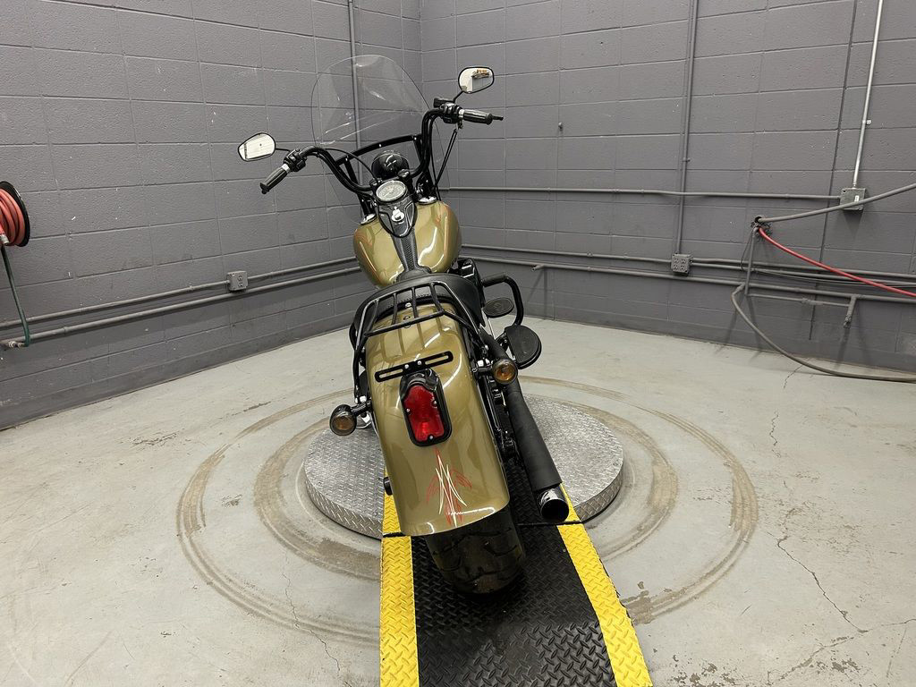 The Heritage Softail® Classic offers long-range touring comfort and nostalgic, dresser style with big FL front end, chrome passing lamps, studded leather saddle bags and a full windshield. A smooth ride and comfortable position carry the Heritage Softail rider far beyond the horizon. The passenger seat and the windshield can be quickly detached for laid-back cruising.
