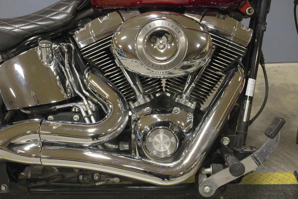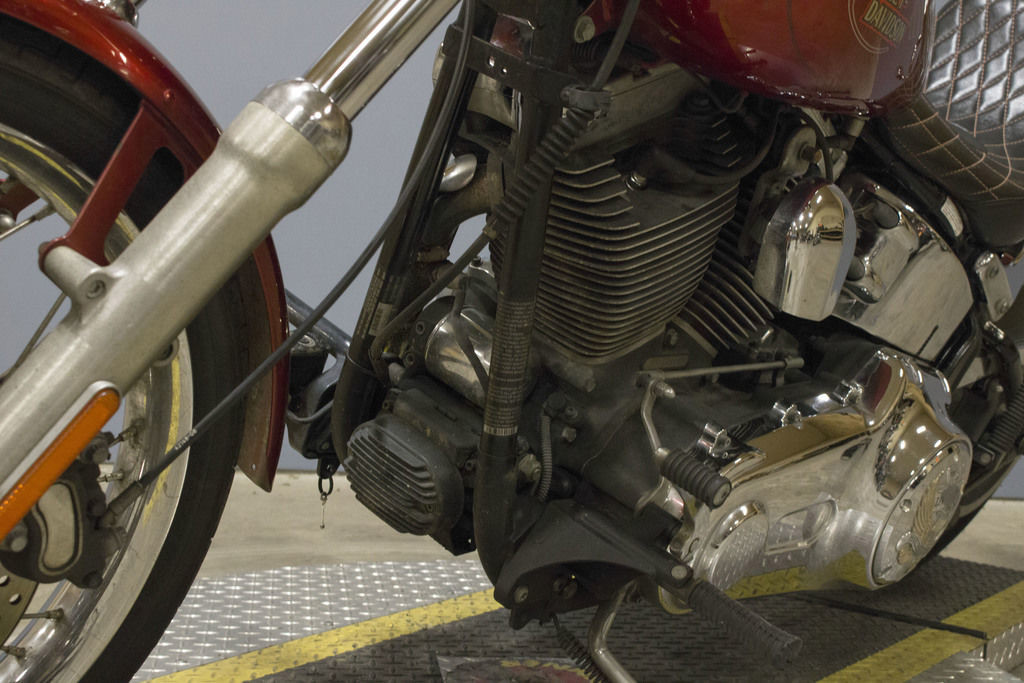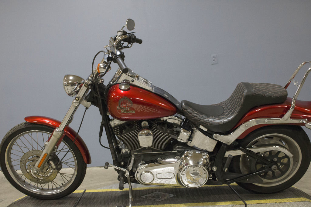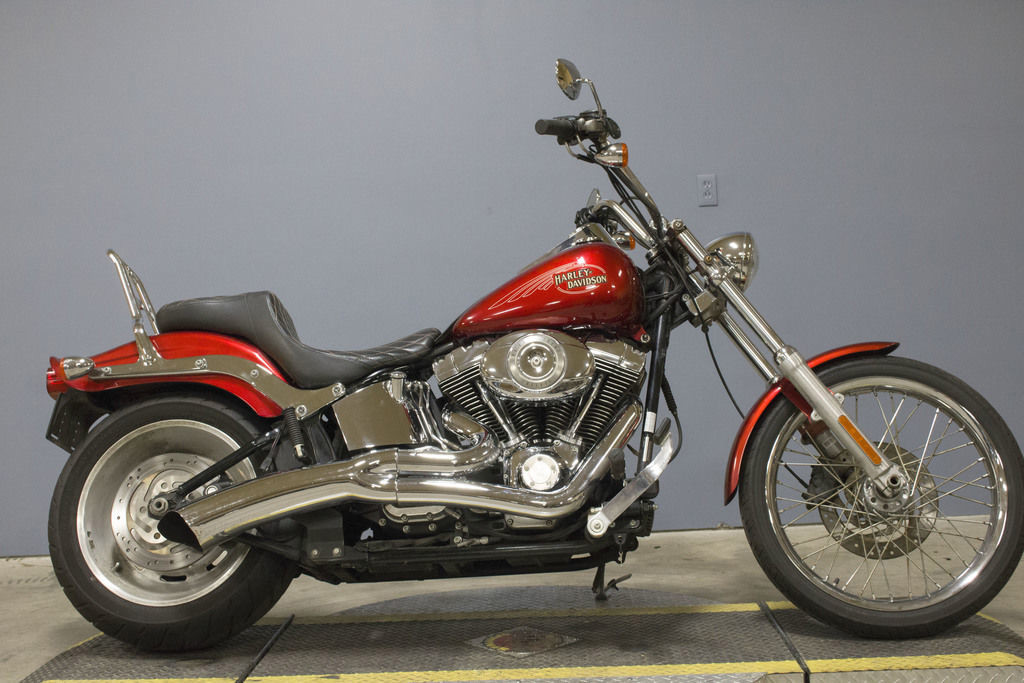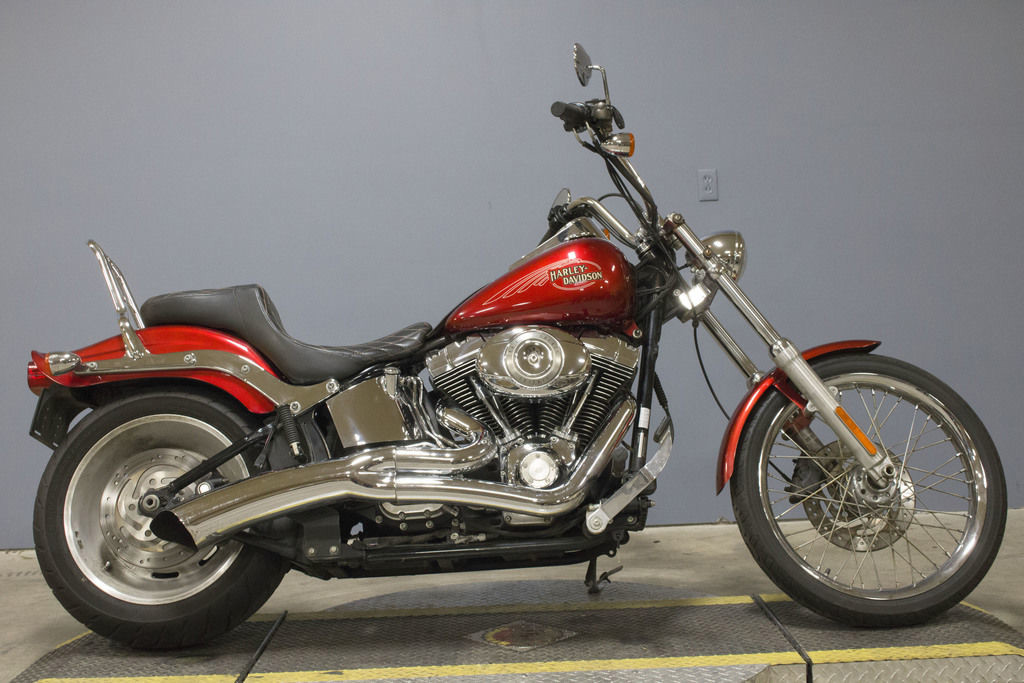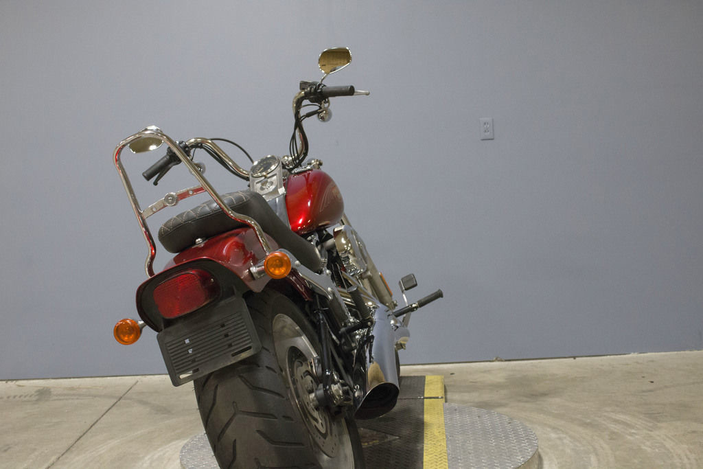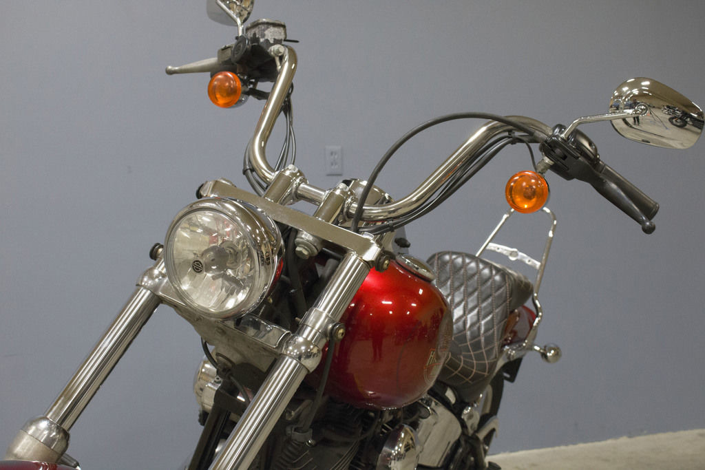 The FXSTC Softail® Custom has a classic hands-high, feet-out, long-chopper profile and the comfort of a two-up seat and backrest that will please a passenger ready for a long haul. A 200 mm rear tire and Bobtail fender lend authority to the rear end. Polished ape-hanger handlebar and Fat Bob fuel tank are classic cool.