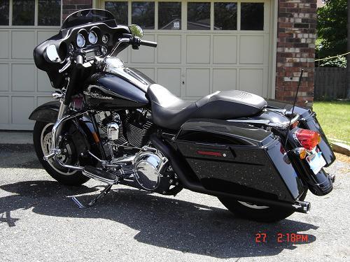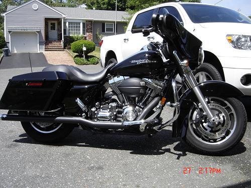 2008 Vivid Black Harley Davidson 96 cubic inch Street Glide in NEW condition with unlimited mileage extended service plan good until July 2013. Factory installed AM/FM CD Player, Cruise Control, Alarm, 6 speed transmission, Air Ride Suspension and Anti-lock Brake System. Aftermarket Vance and Hines True Dual black exhaust, Vance and Hines VO2 air intake system and Dynajet Power Commander. This Street Glide turns heads with it's unique blacked out look and sound. Be advised the emails on this site take about 24 hours to go through. If you are seriously interested in this bike and need a faster response email me directly at daveraz74@gmail.com