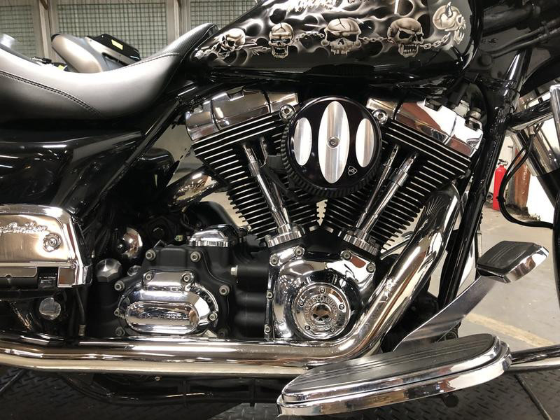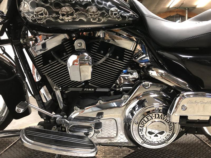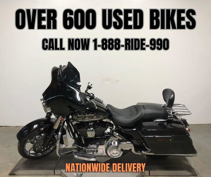 USED HARLEY DAVIDSON STREET GLIDE FOR SALE WITH ONLY 32,269 MILES AND OVER $4,000 IN EXTRAS! WOW, WOW, WOW! TAKE A CLOSE LOOK AT THIS ONE! CHROME FRONT WHEEL, CUSTOM AIR BRUSH ON GAS TANK, HIGHWAY PEGS, WILLIE G ENGINE COVERS, WILLIE G GAS CAP, PHONE HOLDER, CUP HOLDER, TINTED WINDSCREEN, CUSTOM SEAT, QUICK DETACHABLE BACKREST, LUGGAGE RACK, BILLIT INTAKE, AND THE DUAL BUB EXHAUST SOUNDS GREAT! THIS ONE IS A MUST-SEE! JUST SERVICED AT THE DEALERSHIP, INSPECTED, RUNS STRONG, EVERYTHING WORKS, NEEDS NOTHING! STAND OUT FROM THE CROWD, TURN HEADS EVERYWHERE YOU GO!