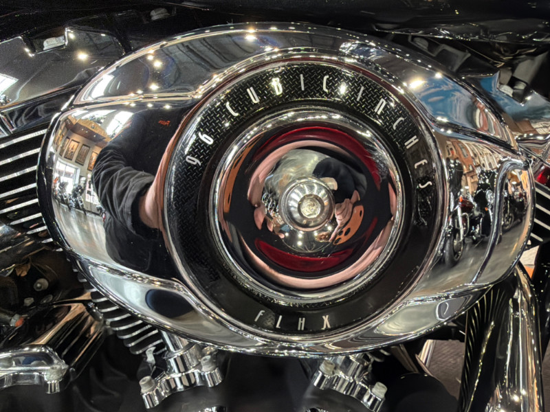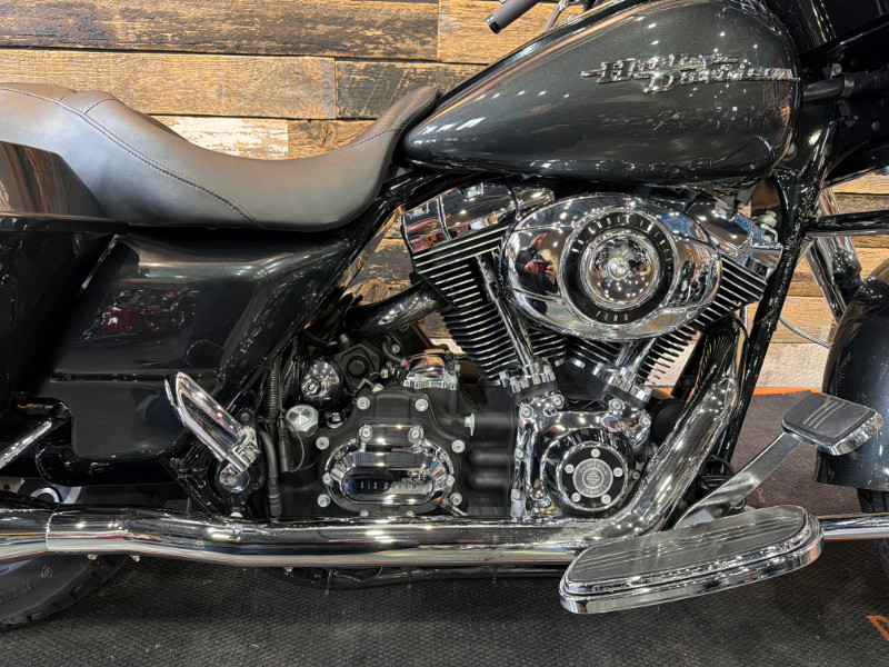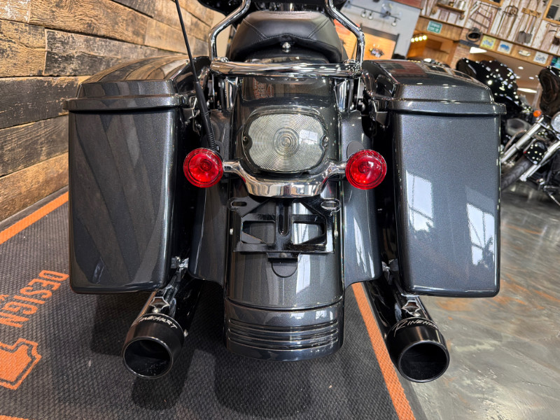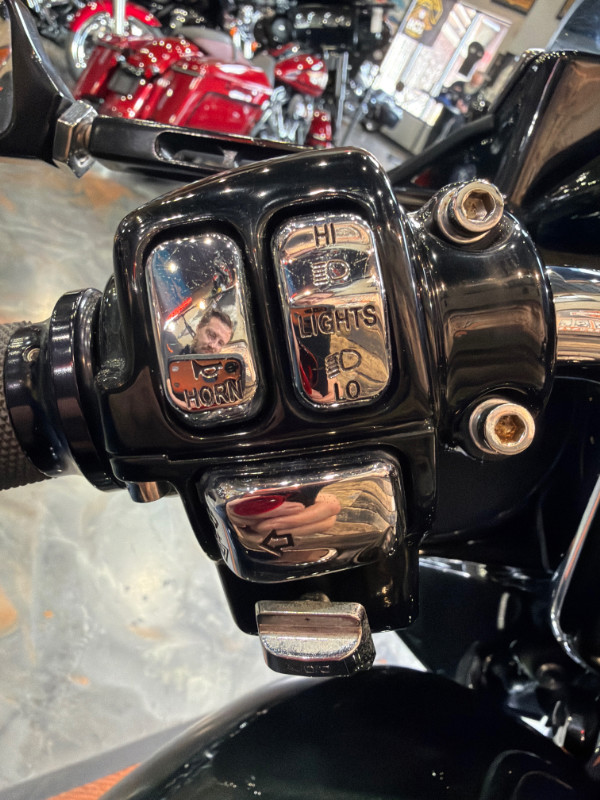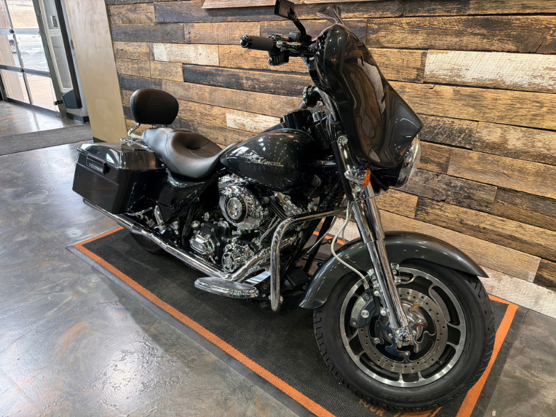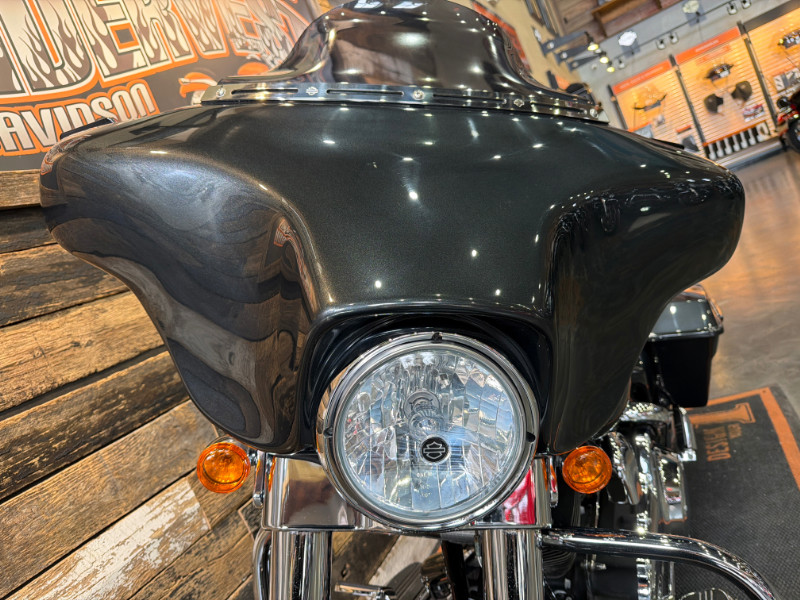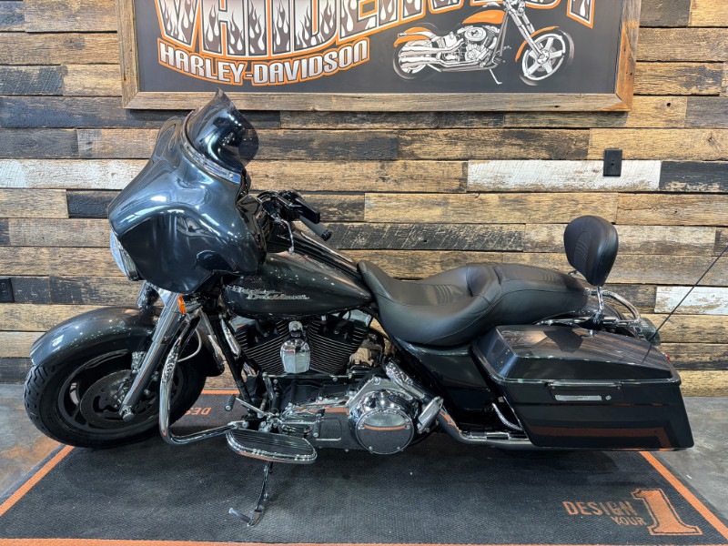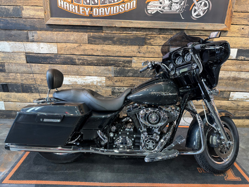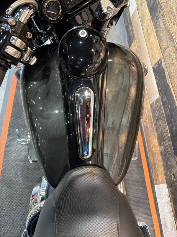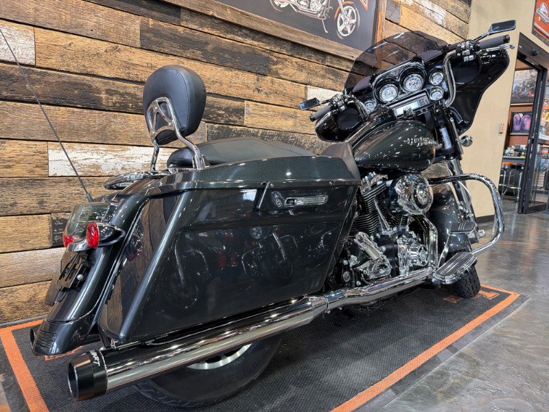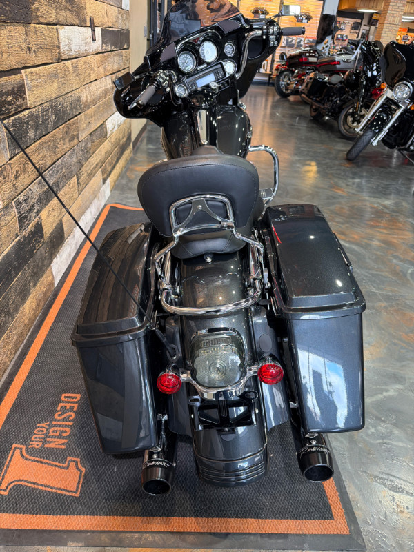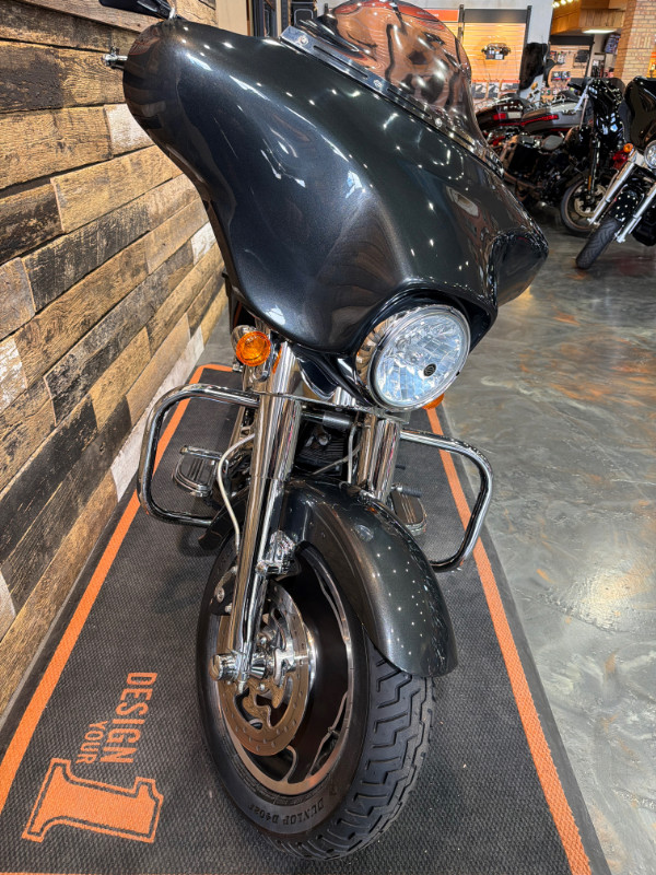 This bike comes with the Twin Cam 96 Engine, 6-Speed Transmission, Custom Chrome Handlebars, Gloss Black Inner Fairing, Chrome Switch Caps, PM Grips, Chrome Front Forks, Braided Lines, Rinehart True Dual Exhaust, Detach Backrest, Gloss Black Dash, Gloss Black Tweeter Pod, Cruise Control, H-D Gauges, Slotted Windshield Trim, Chrome Levers, Black Mirrors, Smoked LED Tailight, Chrome Front Axle Covers, and more.