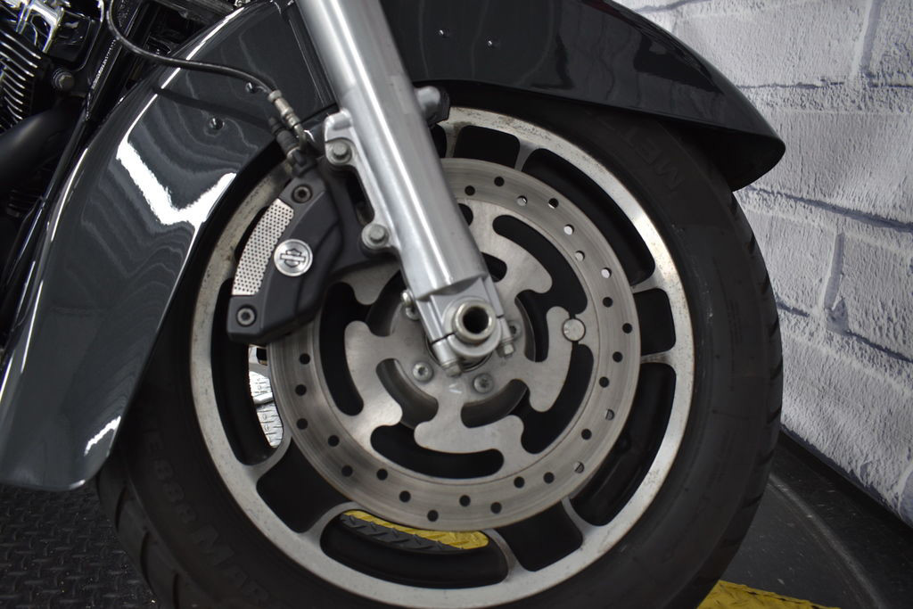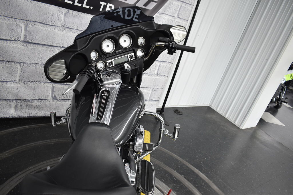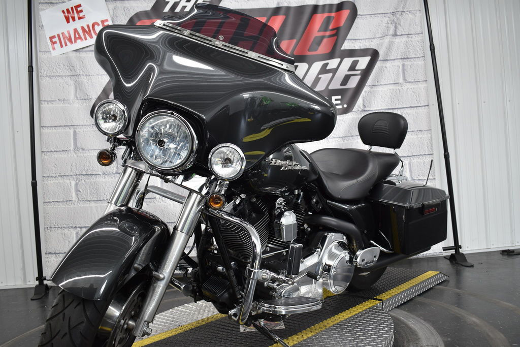 A custom for the long haul, the FLHX Street Glide® offers the comfort and function of a dresser with stripped-down styling. Lowered rear suspension, a smoked mini-wind deflector, and Tri-line LED lighting at the bottom of the rear fender gives the Street Glide® a low, lean profile. A traditional "bat wing" fairing holds a 40-watt Advanced Audio System by Harman/Kardon®, while a new, shorter antenna streamlines the look.