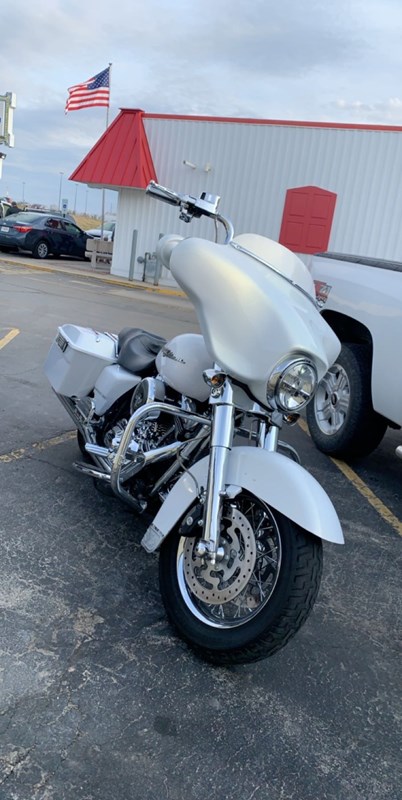 2008 Street Glide. White gold pearl in color (pictures do not do any justice). 17522 miles at time of posting. 14” ape hangers, paint matched inner fairing, LED Headlight, Stage 1 tune and air cleaner, Vance and Hines exhaust. Basically any chrome after market accessory that could be added already is added. (Mostly all kuryakyn chrome accessories).Everything works as it should. Have a whole plastic tote of extra parts to go with.