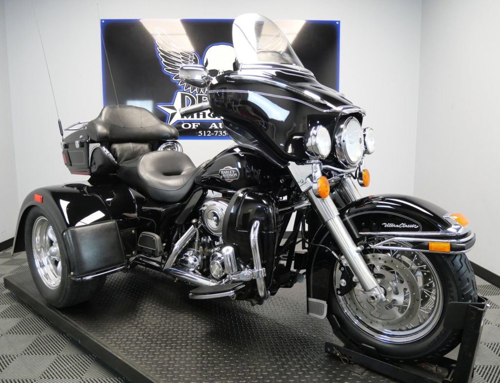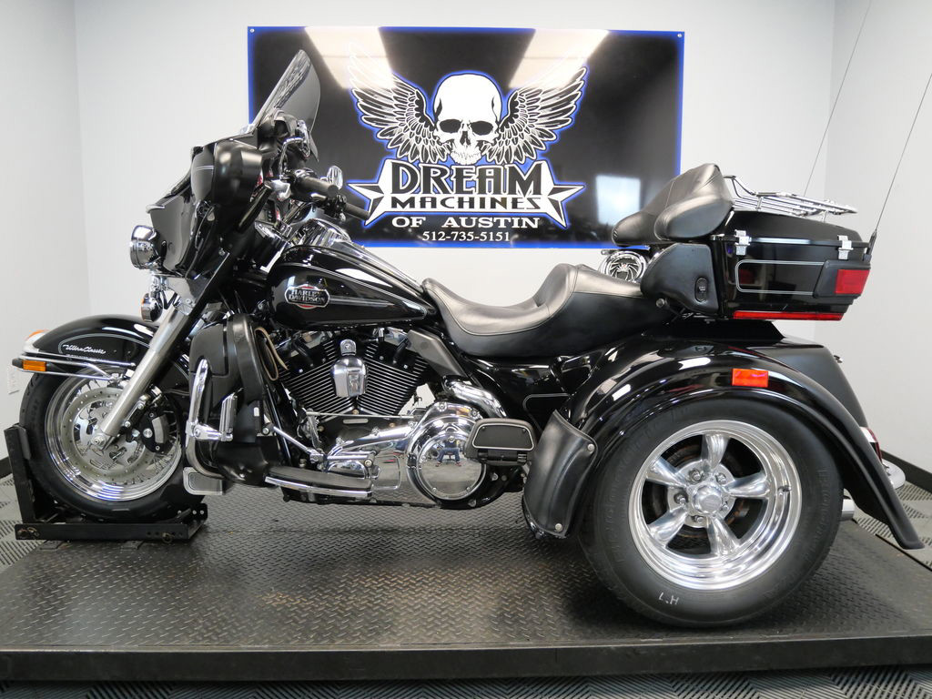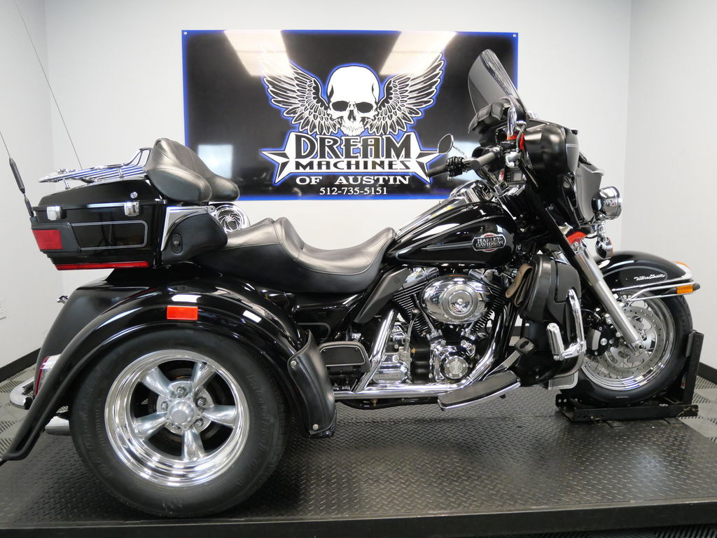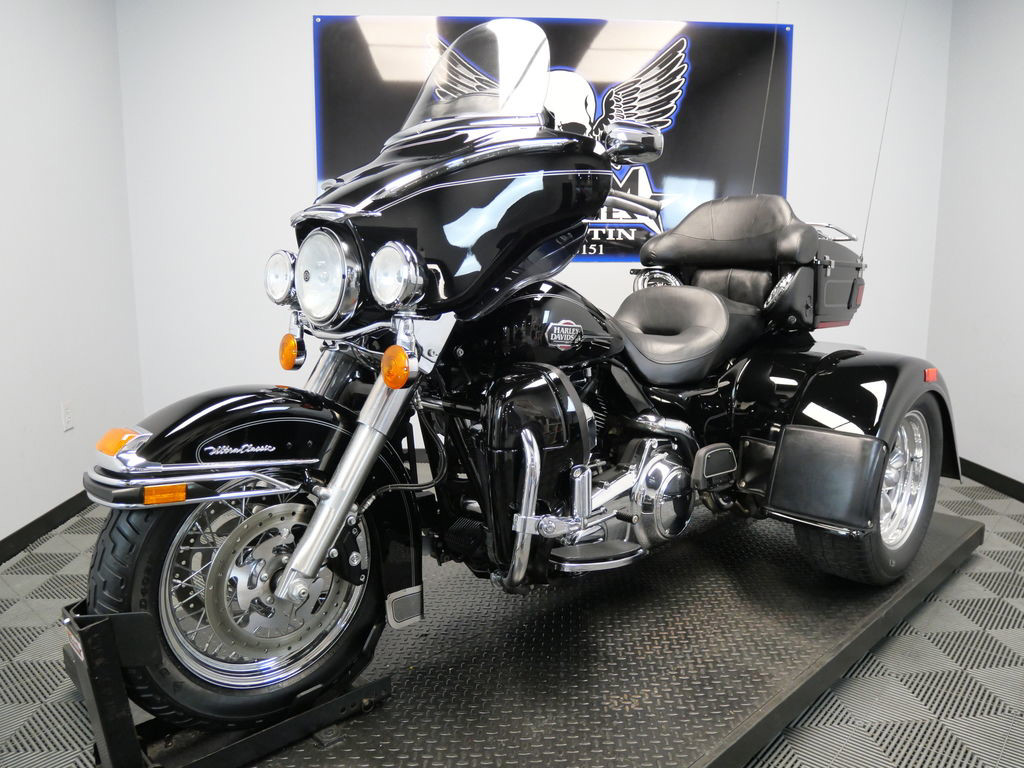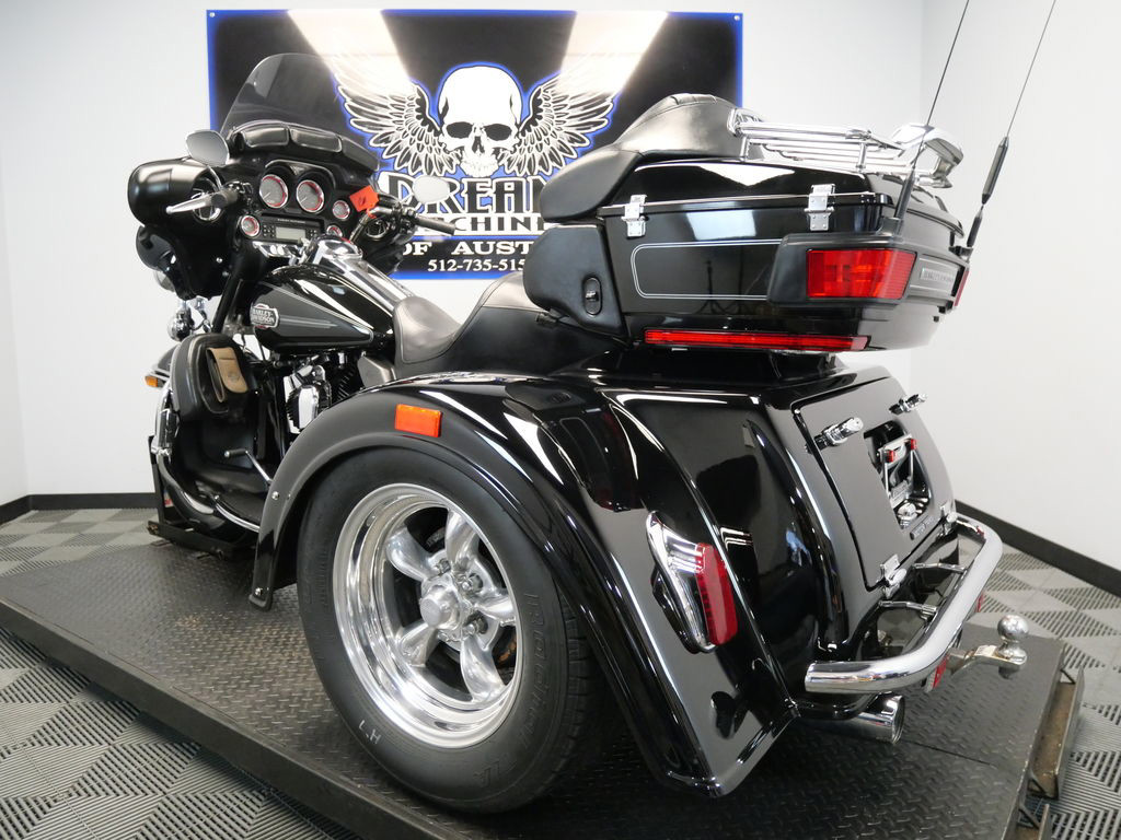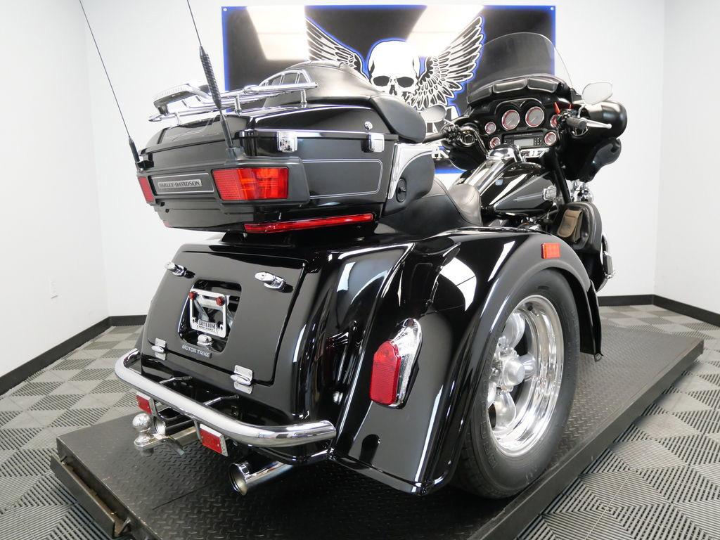 SHIPPING, LEASING, FINANCING AND EXTENDED WARRANTY MAY BE AVAILABLE! YOU ARE LOOKING AT A 2008 HARLEY DAVIDSON ELECTRA GLIDE ULTRA CLASSIC TRIKE (FLHTCU) TRIKE WITH 13,932 MILES ON IT. IT IS VIVID BLACK IN COLOR AND POWERED BY A 1584CC (96") FUEL INJECTED ENGINE AND 6 SPEED TRANSMISSION. THE BIKE COMES WITH CRUISE CONTROL, 1 KEY, 2 FOBS, AND FACTORY SECURITY SYSTEM. THERE ARE SOME EXTRAS ON THE BIKE WHICH INCLUDE A MOTOR TRIKE CONVERSION KIT ($9,495.95), LUGGAGE RACK ($124.95), HIGHWAY PEGS ($179.95), 3 POCKET WINDSHIELD POUCH ($99.95), AND CHROME TOUR TRUNK SPEAKER COVERS ($67.95). THERE ARE NO SCRATCHES, DENTS, OR DINGS THAT I CAN FIND WITH THE EXCEPTION OF A SMALL TOUCH UP ON THE REAR FENDER. THE CHROME AND ALUMINUM ARE IN GOOD CONDITION WITH THE EXCEPTION OF FLAKING ON THE RIGHT TAIL LIGHT. THE TIRES HAVE GOOD TREAD LEFT ON THEM.