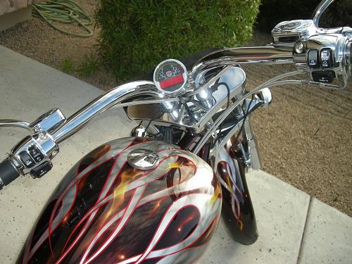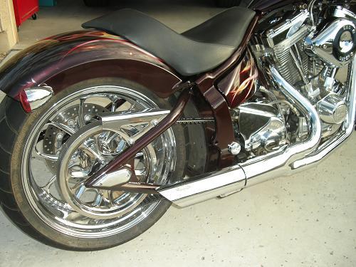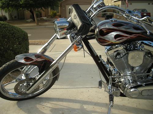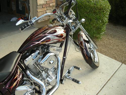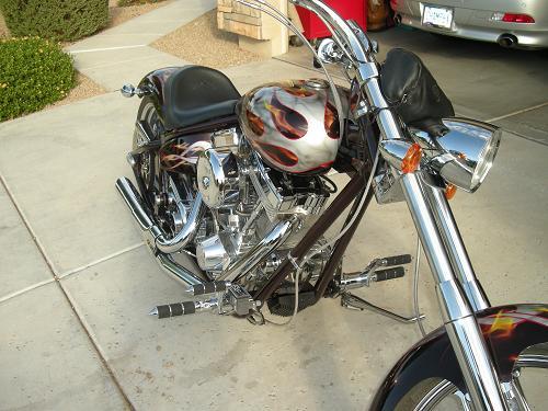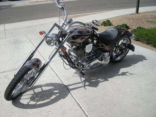 This bike is like new. Custom 5 layer paint and all chrome. S&S 96ci, 6 speed Rivera Primo Transmission right side drive,260mm rear tire, 4" over backbone, Brembo 4 caliper brakes,