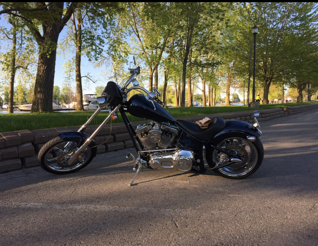 S&S 1573 cubic centimeter engine, paired with six-speed transmission, new lithium-ion and commensurate wiring harness providing phenomenal cold cranking amps, new tires, softail, detachable passenger pillion pad.