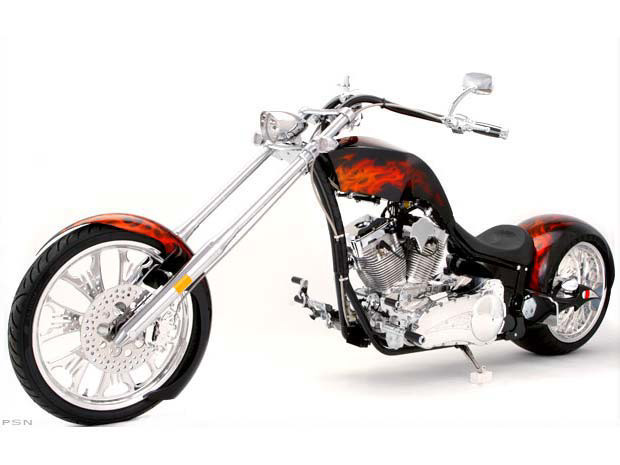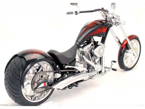 It’s a hand massaged, forward thinking design, and built on the Discovery Channel Biker Build-Off televised competition. It was great winning the competition, but it didn’t stop there... we "tooled up" the innovative design and turned the famous one-off Chopper into production along with a ProStreet sibling. An industrial hot rod drilled holes in the stretched frame with the Devil’s Tail™ swingarm with rear fender to match and an exclusive unique fuel tank are some of the design features that make the Athena Chopper an encounter you’ll never forget. The sunken seat allows you to be positioned inside the chassis, adding to the unique sensation of riding low to the ground with a lower center of gravity. The 100 SMOOTH™ low vibration powerplant adds to the reliably of the motorcycle with a high comfort level of the rider without sacrificing power and price. So you can have your cake and eat it, too.